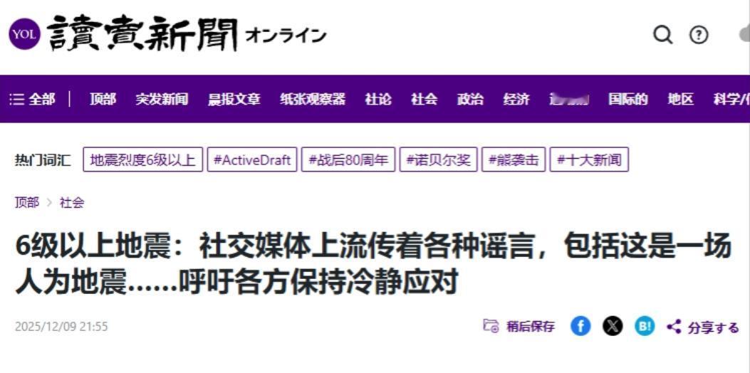 12月8日,日本本州东部附近海域发生7.5级地震后,X平台(前推特)上谣言四起,大量日本网友声称“地震是中国引发的”,还有说是“熊的诅咒(因为最近日本正在闹熊灾,官方加大了捕猎力度)” 这些近乎魔幻的指控,在震后24小时内登顶日本热搜,甚至迫使内阁官房长官木原稔罕见出面辟谣:“灾害信息必须以官方为准。” 这场地震的震源位于太平洋板块与欧亚板块交界处,深度50公里,能量释放相当于5万颗广岛原子弹。 中国地震台网的历史数据显示,该区域过去百年发生过35次7级以上地震,最近一次强震是2011年“3·11”大地震的余震。 日本气象厅的监测清晰显示,震前两周太平洋板块俯冲速度加快0.7厘米/天,这种持续数百年的应力积累,是任何人工手段无法复制的自然过程。 但在谣言中,中国“地震武器”成了替罪羊,有网民煞有介事地对比中日地震波图谱,声称“中国青海的电磁脉冲试验”与此次震源同步——全然不顾两地相隔3000公里,更无视人工地震的震级上限(通常小于6级)。 更荒诞的是“熊的诅咒”:2025年日本熊袭人事件激增,自卫队全年猎杀237头野熊,有人便将地震解释为“熊灵复仇”。 这种逻辑荒诞如“台风是因为小孩没写作业”,却在熊灾最严重的北海道获得10万点赞。 灾害心理学揭示,重大震灾后的72小时是谣言高发期,当东京塔的摇晃视频在网络疯传,当海啸警报声刺破夜空,民众对“不可控力量”的恐惧急需出口。 X平台的算法助推了这种焦虑:带有“中国威胁”标签的帖子,点击率比普通防灾信息高4倍。 有右翼自媒体甚至翻出2013年中国“微波武器”专利,将其与地震强行关联——尽管该专利仅是气象探测技术。 更深层的裂痕藏在中日关系的冰层下,首相高市早苗近期涉台言论激化对立,福岛核废水排海争议尚未平息,民间互信降至冰点。 这种背景下,“人工地震”谣言成了情绪的容器:2011年东日本大地震后,也曾有“美国HAARP气象武器”的阴谋论,如今不过是敌意对象的更替。 一位日本教授坦言:“当民众找不到灾难的合理解释,就会把怒火转向最熟悉的‘假想敌’。” “熊的诅咒”看似无厘头,实则暴露日本社会的生态焦虑,2025年本州熊闯入人类居住区事件达587起,是5年前的3倍。 当自卫队的枪声在山林回响,民间悄然滋生“杀生遭谴”的集体潜意识。 这种原始思维与地震的偶然性叠加,催生了“熊灵报复”的荒诞叙事——就像古代海啸后祭祀海神,现代社会的焦虑仍需要一个“解释”,哪怕违背科学。 值得注意的是,两类谣言的传播群体高度重合:40岁以上网民占比67%,他们经历过2011年核泄漏的信息混乱,更易陷入“官方隐瞒”的被害妄想。 一位大阪主妇在帖子中写道:“2011年政府说核废水安全,结果这次地震数据说不定也是假的。”这种对权威的不信任,让阴谋论获得了自我繁殖的温床。 面对指控,中国网友的回应出乎意料地克制,有人调侃:“若真有这技术,何必派战机绕岛?直接在日本海‘震’出个天然港多省事。” 更有网友制作对比图:中国近年援建日本的32所防灾体验馆,与谣言中的“地震武器”形成黑色幽默。 这种以柔克刚的反讽,反而让日本理性派网民反思:“当邻居在教我们建避难所,我们却在骂他们扔石头。” 日本官方的辟谣姗姗来迟,震后30小时,内阁官房才首次提及“人工地震说”,而此时谣言已覆盖83%的日本网民。 东京大学的舆情分析显示,每1条科学解释的传播量,需要对抗17条阴谋论的转发——这恰如2011年福岛核谣言的重演:当民众需要情绪出口,真相往往输给想象。 这场地震最终造成51人受伤,9000人避难,而网络上的“次生灾害”仍在蔓延,截至12月11日,X平台中国震源话题仍有23万条讨论,其中42%的发帖者承认“明知不科学,但就是想发泄”。 这种集体非理性,暴露出灾害应对中最脆弱的一环:当科技无法安抚恐惧,当互信被地缘政治撕裂,谣言便成了最廉价的止痛药。 或许正如一位日本高中生在震后日记中写的:“大地摇晃时,我最先抓起的是手机;等平静下来才发现,真正需要抓住的,是对常识的信任。”这句话,不仅写给东京的星空,也写给所有在谣言中沉浮的灵魂。