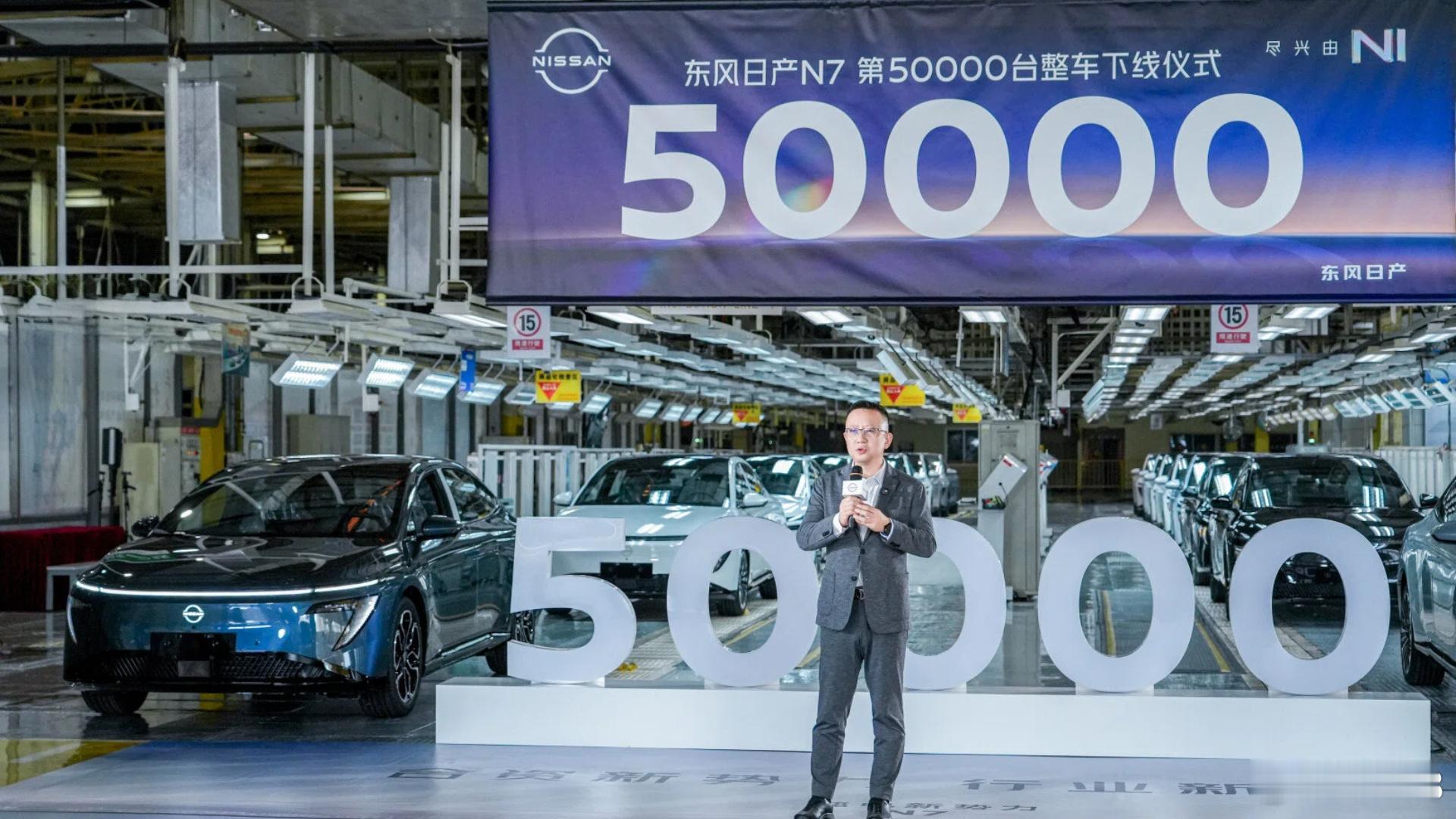 第50000台日产N7正式下线 不知不觉间东风日产N7的累计产量已经有5万辆了,从4月底上市算起来它实现这个成就花的时间应该在200天左右吧 合资纯电爆款200天5万台下线