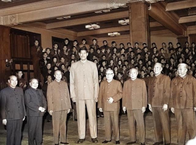 1978年,多位领导人与传奇中锋穆铁柱罕见合影。这位身高2. 28米的亚洲第一中锋,1949年生于 山东菏泽 ,1973年入选 八一队 ,1977年加盟国家队,为中国篮球发展作出重要贡献。 穆铁柱1949年6月1日出生在山东省菏泽市东明县一个农村家庭,早年家境还算殷实,到解放后被定为地主成分。他从小身材高大,青少年时期到新疆务工,后来参军。在部队里被发现有篮球潜力,1972年进入八一队训练。次年正式入选八一队,凭借身高优势迅速成为主力中锋。1977年加入国家队,参加亚洲锦标赛并夺冠。那时他体重160公斤,扣篮时篮筐摇晃,防守时对手难以逾越。他在场上移动缓慢,但篮下控制力强,多次帮助球队取胜。这些经历让他从农村小子变成篮球明星,靠的就是天生身高和后天努力,那年代中国篮球正起步,他这样的球员就是支柱。 穆铁柱的篮球生涯起步于部队,那时候他刚参军不久,就因为身高2.28米被注意到。1972年他开始在济南军区篮球队训练,很快适应了篮球规则。1973年转到八一队后,他成了队里不可或缺的中锋,体重160公斤让他在篮下站得稳如泰山。1977年入选国家队后,第一次参加亚锦赛就拿冠军,这对他来说是关键一步。中国篮球那时在亚洲不算顶尖,但他用身高弥补了速度不足,防守端像堵墙一样,对手投篮都得绕着他走。他的贡献不光是个人数据,还带动了整个球队,那几年中国男篮开始在亚洲崭露头角。 1978年,中国男篮参加第八届亚运会,在曼谷赛场穆铁柱作为主力中锋出战。他在决赛中封盖对手投篮,抢下关键篮板,帮助球队以104比74大胜韩国队,获得冠军。回国后,12月1日在北京人民大会堂,国家领导人接见中国体育代表团。汪东兴、邓小平、华国锋、叶剑英、李先念、耿飚、陈锡联等领导人与运动员握手。穆铁柱站在队伍前列,领导人们走近时,他弯下腰伸出手,握住每位领导的手。合影时,穆铁柱被安排在中间位置,领导人们围在他身边。叶剑英站在他右侧,抬头仰视穆铁柱的脸庞,身高差让叶剑英显得像个孩子。邓小平在左侧,伸手拍了拍穆铁柱的胳膊。华国锋站在穆铁柱左侧,调整位置时微微后退,以便镜头捕捉全貌。李先念在右侧,双手抱胸,脸上带着笑容。耿飚和陈锡联分列两边,汪东兴在最左。摄影师按下快门,记录下这一刻,穆铁柱低头注视镜头,领导人们直视前方。整个过程在大会堂大厅进行,大厅灯光明亮,墙上挂着国旗,运动员们穿着队服,现场气氛庄重。这张合影成了穆铁柱生涯高光,也反映了当时体育界受重视的程度。 那次1978年亚运会是中国男篮的一个里程碑,穆铁柱在场上发挥了核心作用。他身高优势让韩国队在决赛中吃亏不少,中国队大比分赢球,回来就受到高层接见。合影里穆铁柱站在中间,领导人围着他,这不光是荣誉,还说明篮球在那时代被当成国家形象的一部分。穆铁柱的体重和身高让他在照片中特别突出,其他人得仰头看他,这张照片流传下来,成为中国篮球历史的见证。那年他29岁,正值巅峰,之后几年他继续带队拿冠军。 穆铁柱继续在国家队效力,1979年率队赢得亚洲锦标赛冠军,1981年和1983年再获亚锦赛金牌,1982年亚运会卫冕成功。他在场上多次单场得分超过50分,一次甚至达到80分。1987年六运会后退役,次年从球员转为教练。2000年5月从八一体工大队退休,享受副师级待遇。2008年9月14日上午10时45分,因心脏病在北京解放军309医院去世,享年59岁。他的子女穆榕和穆桐身高正常,从事普通工作。这些成就让他成为中国篮球第一代巨人中锋,影响了后来很多球员。 穆铁柱的后期生涯也很稳健,1979年亚锦赛他又带队夺冠,那时候中国男篮在亚洲基本无敌。1981年和1983年连续拿金牌,1982年亚运会成功卫冕,这些都是他作为中锋的贡献。他单场80分的记录在当时很惊人,那场比赛他几乎包揽了篮下得分。退役后转教练,继续在八一队工作,指导年轻球员。退休后他过得低调,直到2008年因心脏病去世。他的子女没继承身高,从事普通工作,这也挺接地气的,不像有些明星后代那么高调。