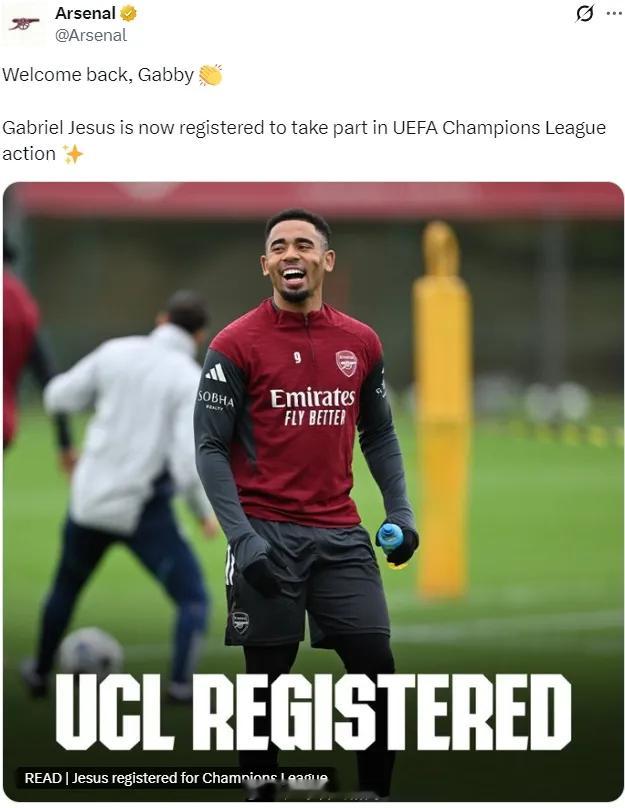 官方:热苏斯取代道曼进入了阿森纳的欧冠A名单,立即生效,鉴于此,热苏斯将可以代表阿森纳出战对布鲁日的欧冠比赛。道曼在上周六代表枪手u21出战比赛时脚踝受伤,他将在明年1月被加入到阿森纳的欧冠B名单,但从12月9日算起,道曼将在60天内不允许出战任何欧战比赛(直到2月6日)。