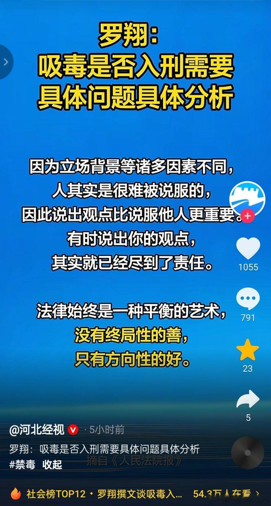 罗翔:吸毒是否入刑需要具体问题具体分析。“我的立场就是,需要具体问题具体分析,和光同尘较之非黑即白,也许是一个较好的选择。”热点现场
