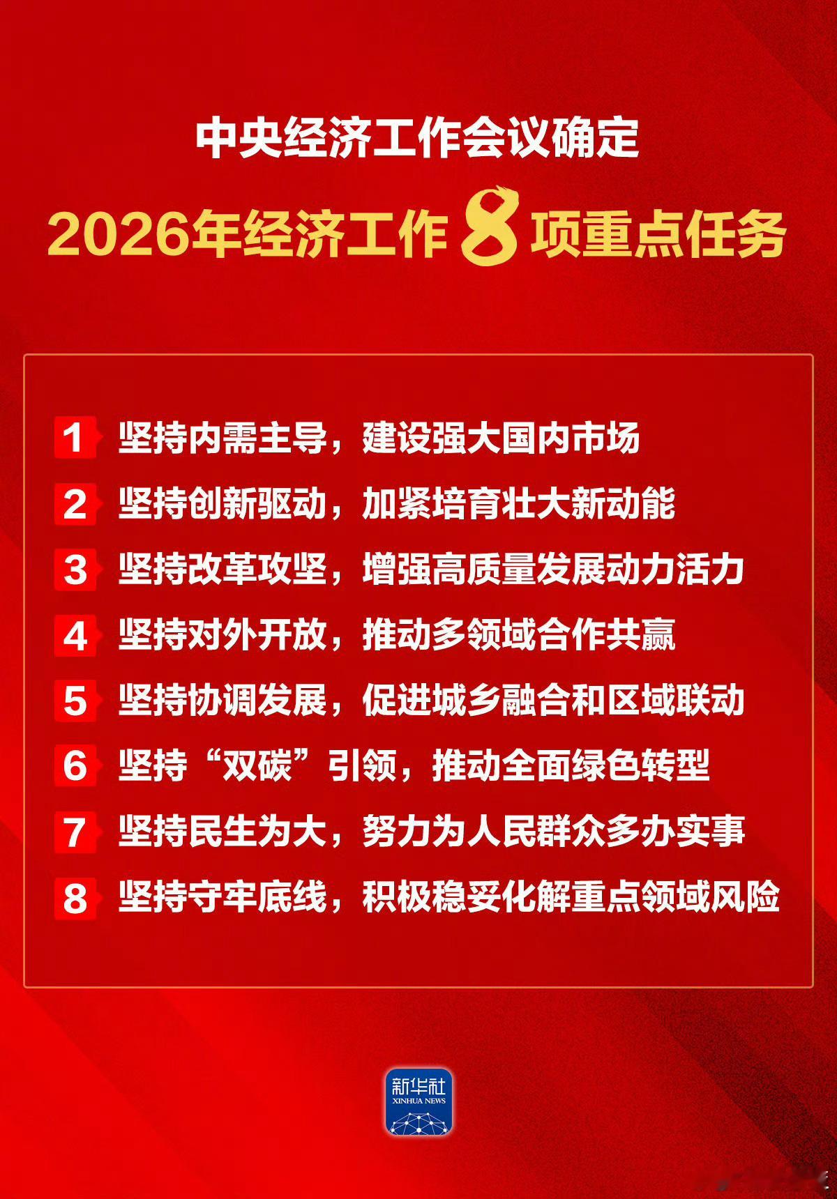定调2026:重要工作会议——核心梳理!1.扩大内需2.科技创新3.民生普惠4.