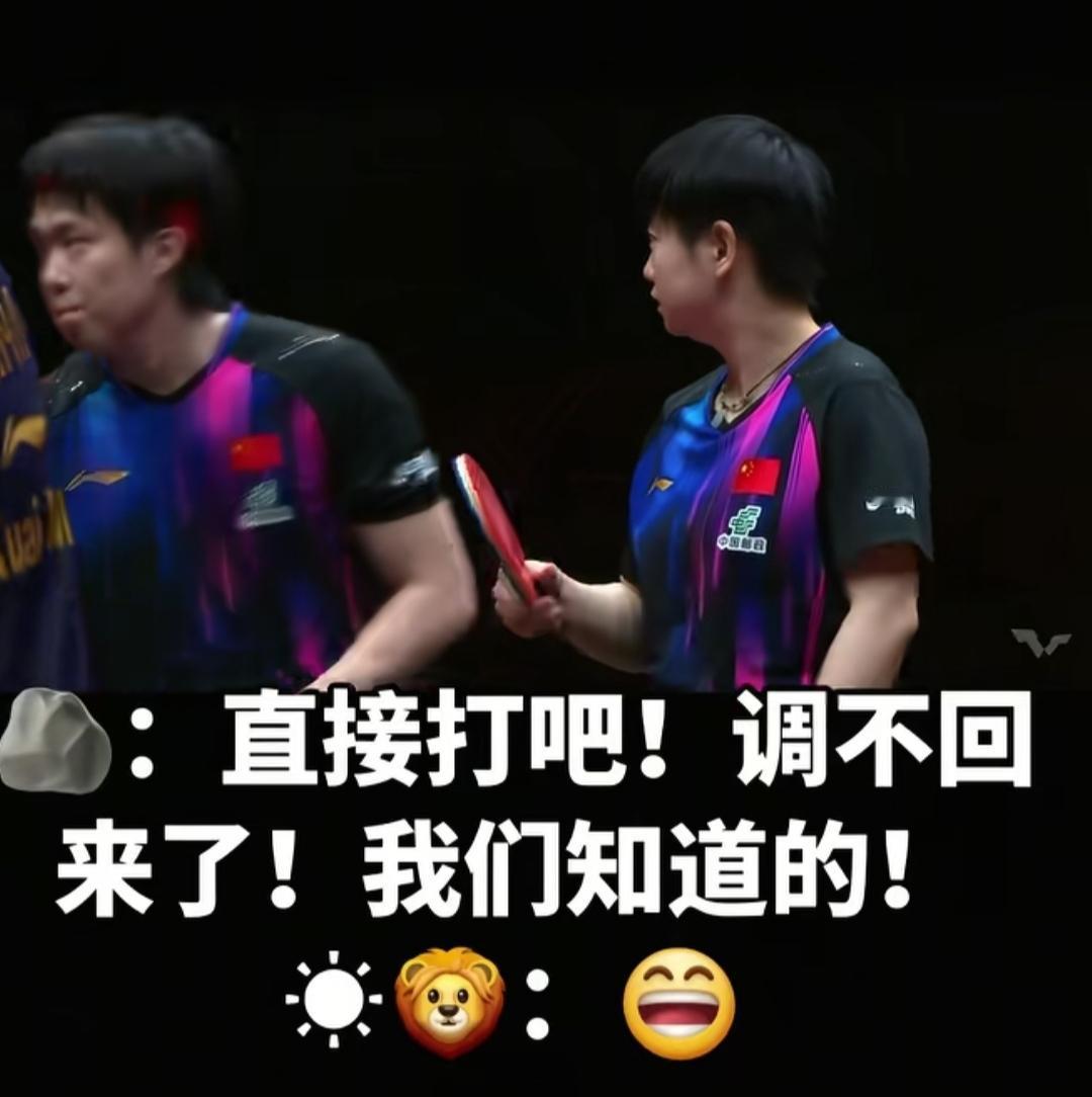 今天的快乐是小石头给的。 香港混双比赛,莎头对小石头蒯曼组合,中间电子屏黑屏,看着裁判手忙脚乱的翻计分,小石头上来一句:“打吧,接着打吧,调不回来了,我们知道的。” 哈哈,小石头这是想,哥哥姐姐打吧,多一分少一分我们都是输,打完赶紧下班! 听到这里沙头都乐了!