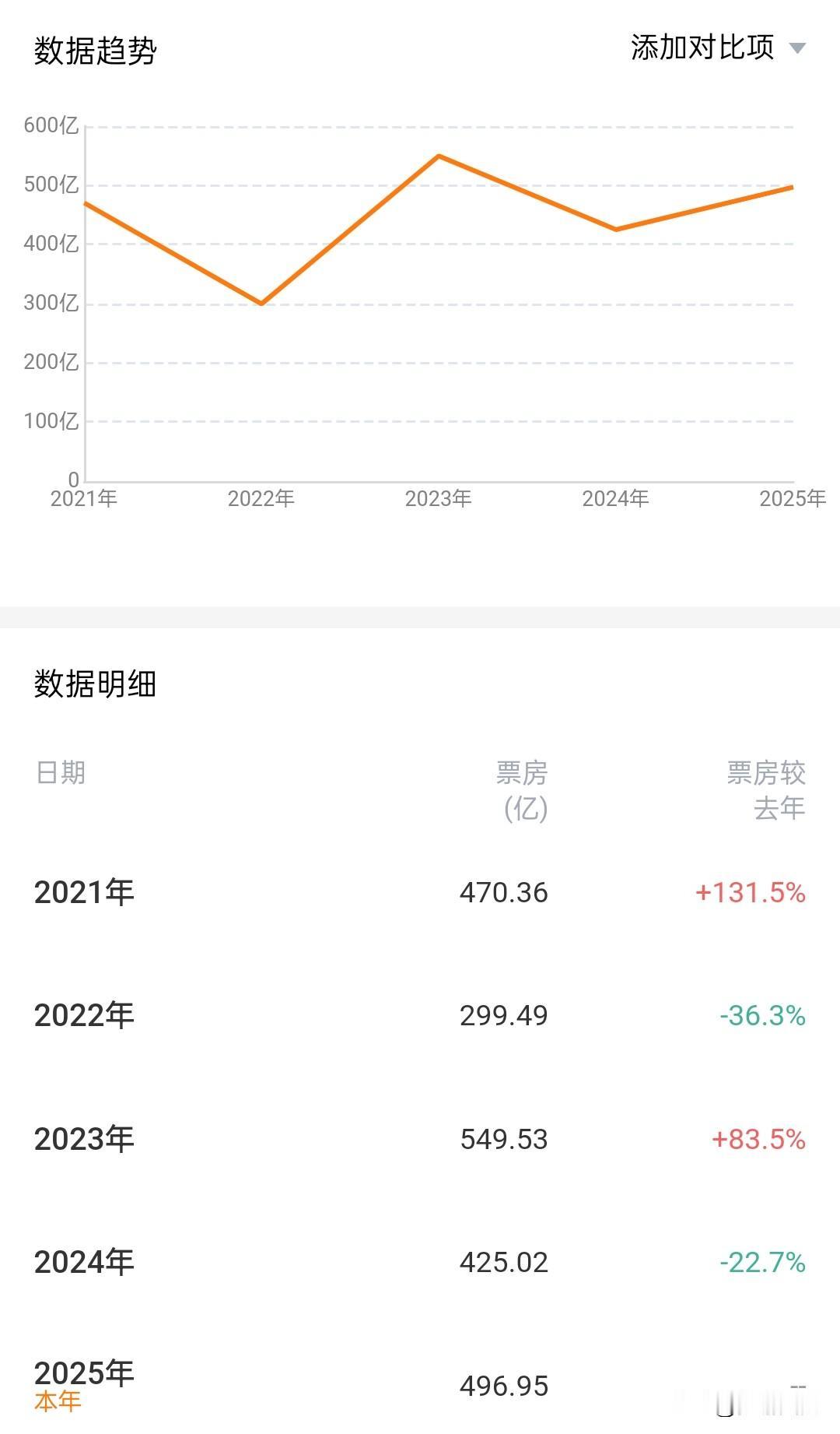 今年的总票房会是近五年最高吗,影视再次支棱起来了? 截止12月11日,今年累计票房已经达到近497亿,而从2021到今年的最高票房是2023年的549.5亿,目前差值是52.5亿。此时距离年底,还有20天,要补平52.5亿的差值,需平均每天的票房达到2.63亿,这是很难的。12月19号《阿凡达3》上映,那时距离月底,也不过13天的时间,除非质量过硬能像《疯狂动物城2》一样13天累计票房可以达到30亿。舍此外,也必须还要一两部质量尚佳且卖座的电影,才能补足剩余的16亿的差值。就个人而言,今年总票房要超过550亿,几乎极难实现!