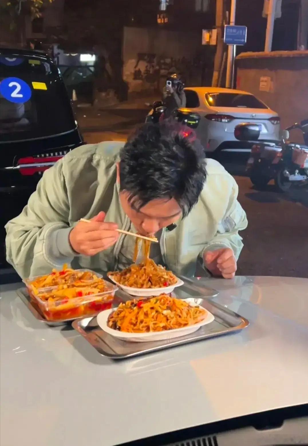 李晨在柳州半夜三更自己开车跑去吃螺蛳粉,他特意选了个老城区的路边摊,点了碗粉就大口大口的吃了起来,李晨满眼都是螺蛳粉,完全没有明星形象。他穿了一件浅绿色衣服,留着短发,身材很壮,看起来挺有精神。他把螺蛳粉放在车的机盖上,手拿筷子低头弯腰吃了起来,随后便端起来吃,看起来就像在自己家一样随意。柳州很多艺人来录制节目都会私下溜出来吃东西,吴镇宇就被拍到一个人吃螺蛳粉,看来柳州也是好起来了。李晨是很努力的一个人,感觉没有什么不好的地方,每个努力的人都值得尊重。