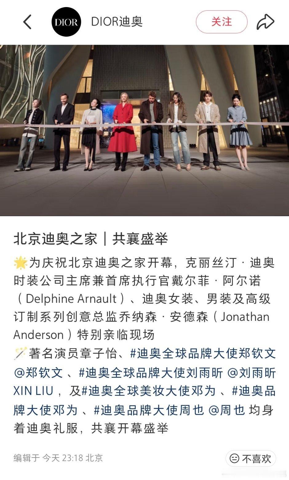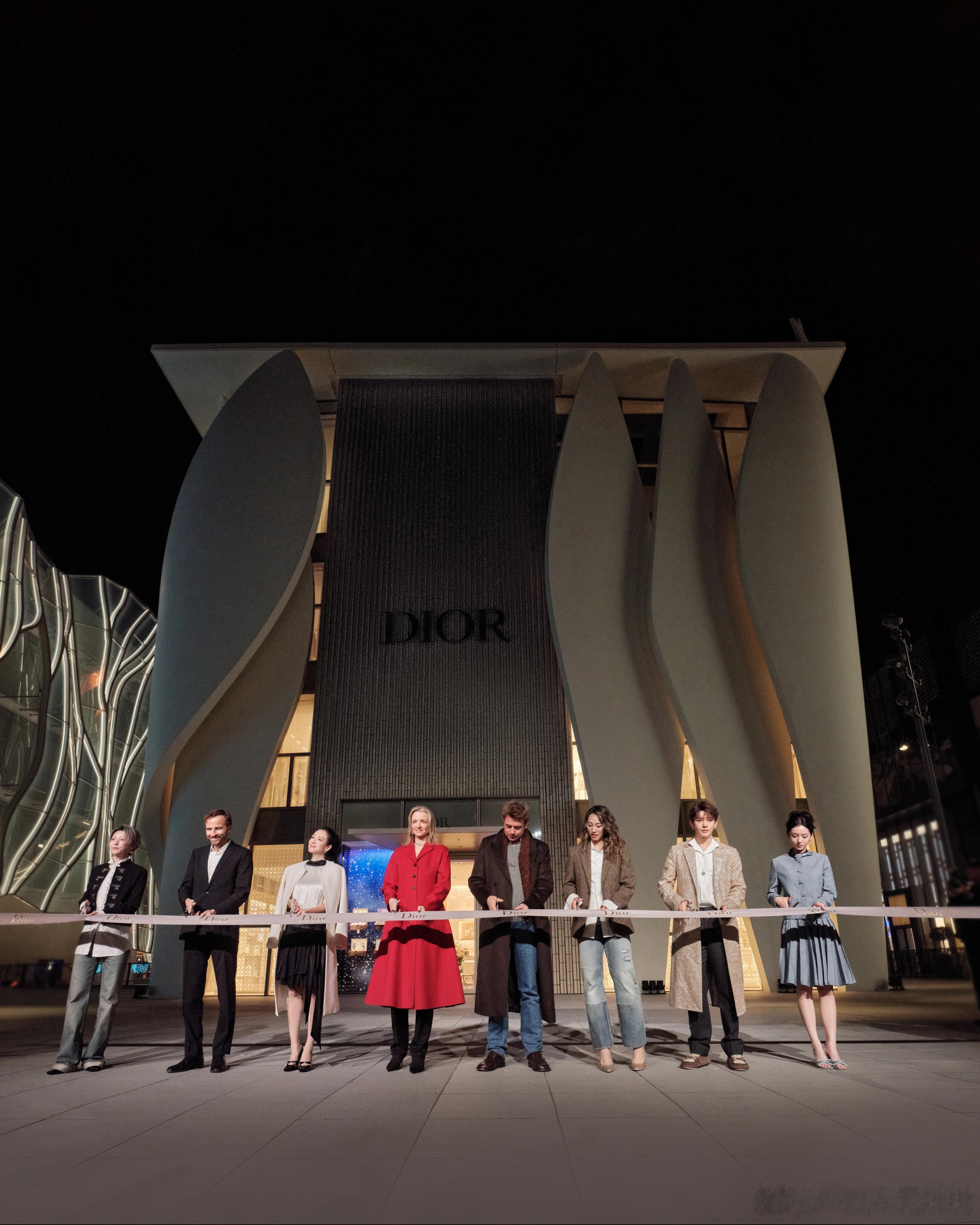 北京迪奥之家开幕剪彩合影,章子怡、迪奥全球品牌大使郑钦文 、迪奥全球品牌大使刘雨昕、全球美妆大使及迪奥品牌大使邓为、迪奥品牌大使周也亮相剪彩仪式。Dior活动