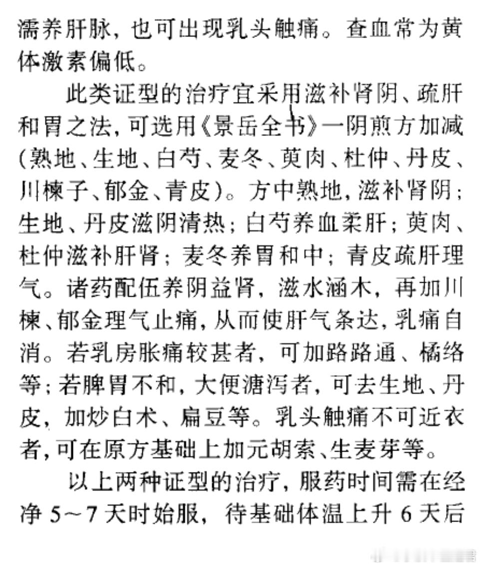 月经前几天出现轻微乳房胀痛,几乎是每位女同胞都经历过的,一般不需要特别治疗,或者吃点逍遥丸、加味逍遥丸即可。但还有一种乳房胀痛,出现在经间期,即排卵期,患者会和医生说,我还有半个月才来月经,乳房就开始胀痛,甚至要疼到月经结束,很影响心情😮💨这往往是肾阴亏虚,阴虚火旺,就不能仅仅疏肝了,而是要懂得“滋肾”,从月经干净后5-7天开始服,连服1周。