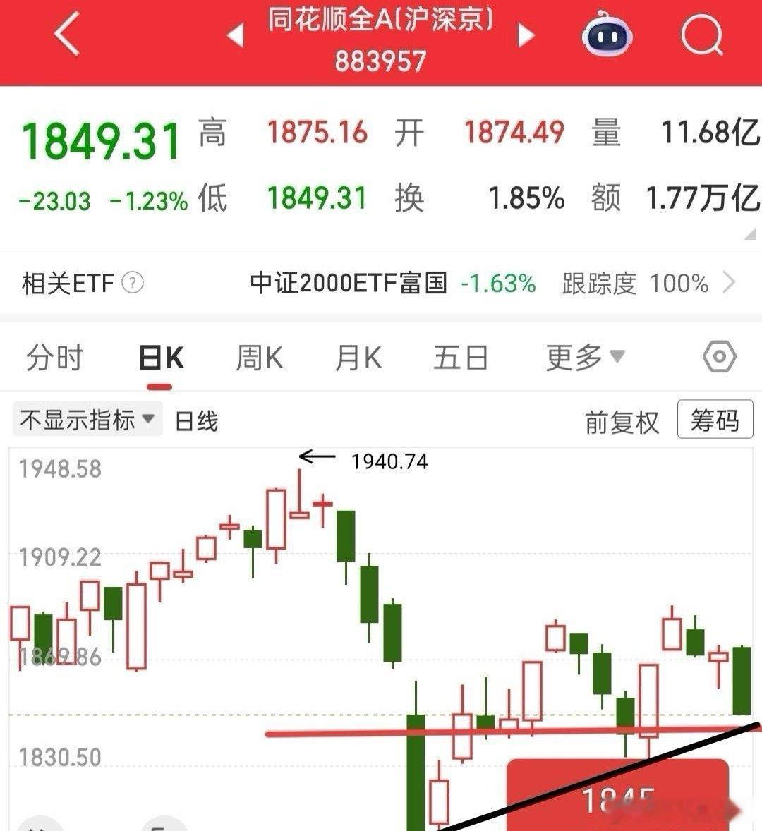 全A直接把1853点破掉了,反抽了一下又掉下来了,那就说明承接不行!主力也不愿意来守护这个点位!明天情绪才会止跌,今天跌停的前排股,一直有资金在翘板,应该就是拿先手的,说明很多资金也是看明天情绪止跌的!不会选股就别买了,这行情全是量化,太吓人了,震的人要吐了A股