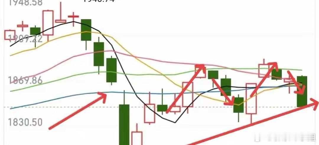 明天要涨了!今天的走势是不是特别意外?昨天很多人都预判今天会收中大阳线,结果收了个中阴线,实在令人惋惜!那么我们就要总结出一个教训,预判和应对相比,一文不值早上专门给大家画了个箱体,为什么凌晨降Xi,并且外围大涨的情况下,反而要谨慎呢?因为昨天尾盘其实已经涨过了,虽然收盘在零轴,但是实际上它是涨了0.66%,昨天已经积累了获利盘,今天又高开,虽然我们散户没赚钱,但是量化可是实实在在赚到了,它们靠的就是差价,只要有波动,他们就可以一直做正T,今天砸下来,它们又拿货了你说量化是不是绝绝子?就是搅棍一般的存在,我们可以称之为收割散户的小能手,这种打法,我敢说在座的各位,十个人打一个都打不过,所以评论区经常看到,我追高了肿么办?那只有被吊打的份呗,你要想追高的意义是什么?如果能用更低的价拿到货,干嘛非要去幻想涨停的存在?所以量化横行的市场,只有阴入阳出,别无他法,一割就拉升,一追就挂住!这是目前的规律,我们无法改变其实中午很多人疑惑,为什么全A要看到1845点附近?其实中午我给大家画过了,也就是两线交汇处这里的支撑,要比上方那些支撑更加强一些,有多强?就像二十岁的小青年那样强,吃馍馍都可以吃五个,麻袋一次能扛俩!如果我们打开均线再看看这根蓝线,也就是60日线,股价一直围绕着60日线再做整理,每次拉升都要受阻,每次突破过后都要再跌下来,形成一个有趣的现象,那就是进二退三,低点抬高!还有更有意思的你看大盘和馍馍的走势对比,就是跷跷板,大盘拉升,它就回落,大盘回落它就拉升,那么明天馍馍也就该回调了,还有一点很重要,昨天是情绪退潮的第一天,今天是第二天,明天就是第三天了,也就是说,明天情绪要先于市场止跌!就啰嗦这么多吧!我说的逻辑,一般人都能看懂,本来你很迷茫,一看我的思路就特别清晰,但是让你们自己去分析,又是一头雾水,这就是盘感压制!