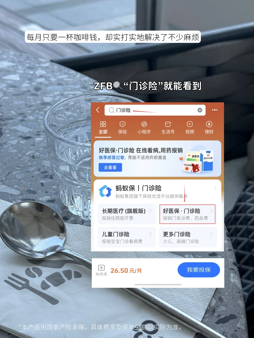 有需要上支付宝搜索门诊险就能看到。本产品由国泰产险承保,具体费率及保单金额以实际为准