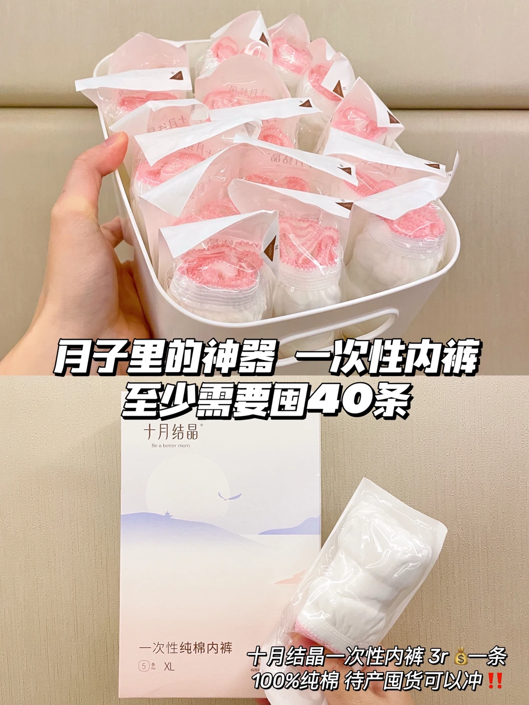 3️⃣一次性内裤:至少准备40条,月子里不要碰冷水,洗手也要用温水,穿一次性内裤就会方便很多,用完直接扔掉,注意穿100%纯棉的,这样才透气舒适,推荐十月结晶一次性内裤,性价比高,每一条内裤都经过EO消毒后独立包装,不用洗就可直接穿上。裆部是双层纯棉的,厚实耐穿,要不和腿部做了加宽,一点也不勒肚子大腿!