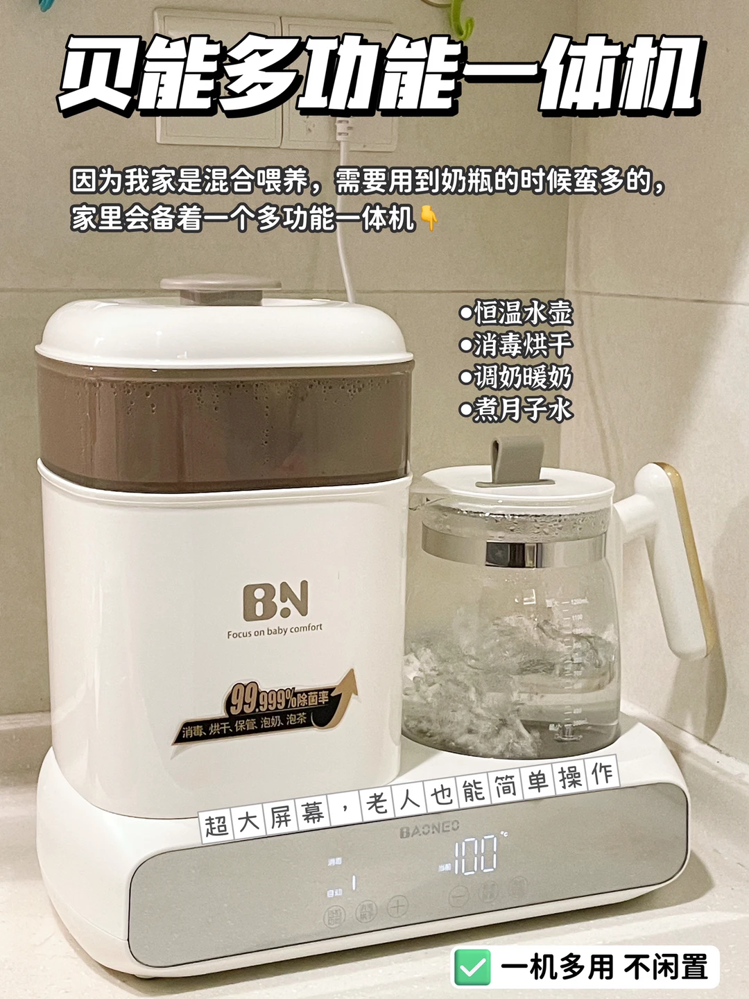 🔹提示:宝宝喝奶的电器蛮多的,如果不想家里太多电器占空间的话,可以直接入一个贝能多功能一体机,它=恒温水壶=奶瓶消毒烘干器=暖奶器,才200r+💰,把瓶喂需要的电器都攒齐了‼️
