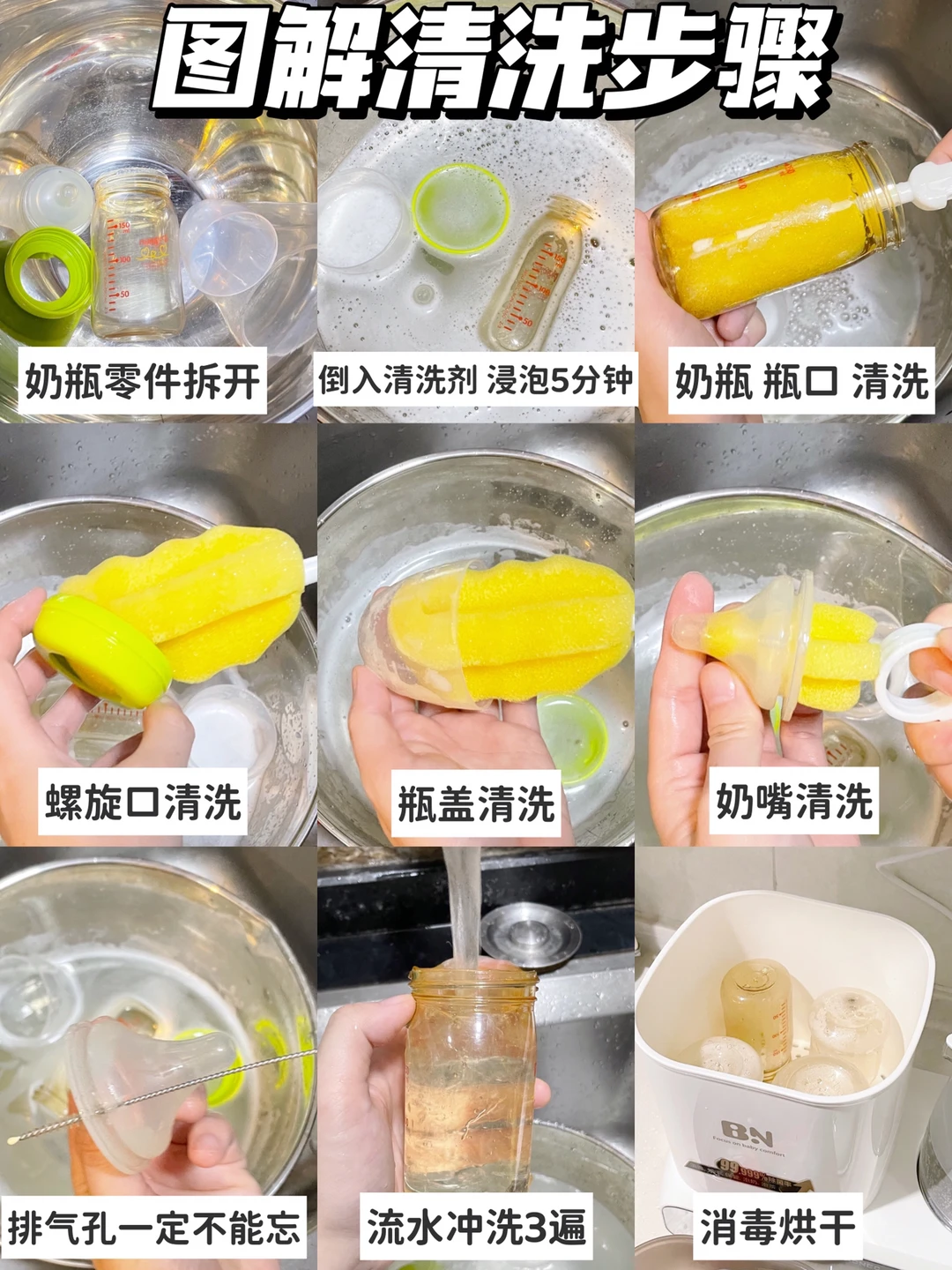 4、清洗奶瓶正确方法