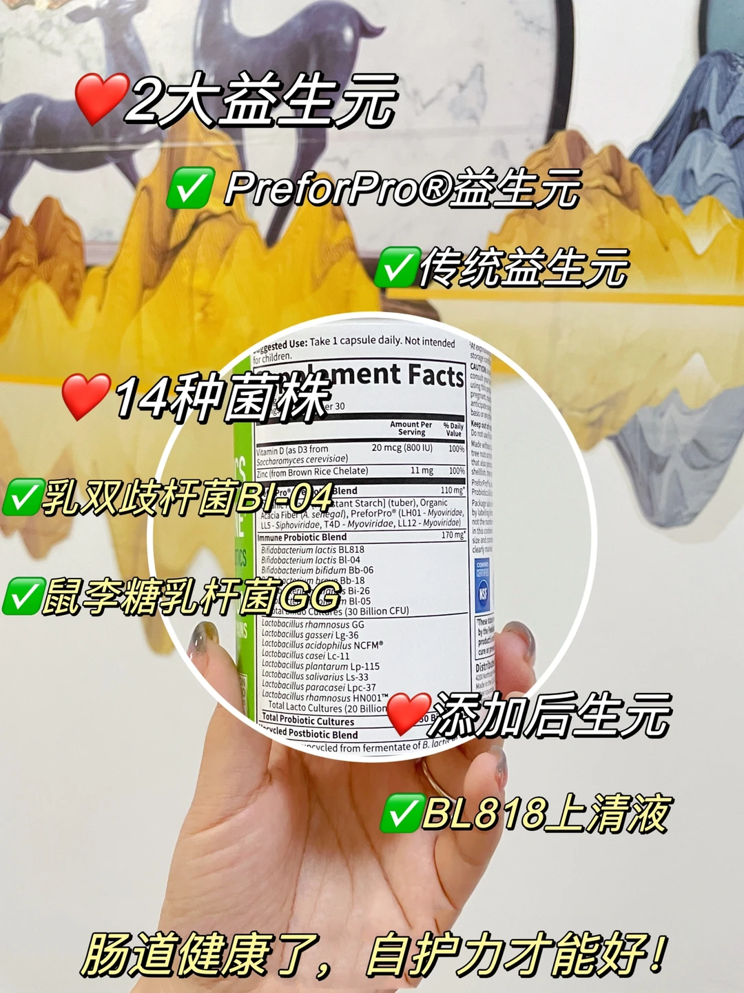 核心成分:核心菌株乳双歧杆菌Bl-04+鼠李糖乳杆菌GG益生菌组合出击