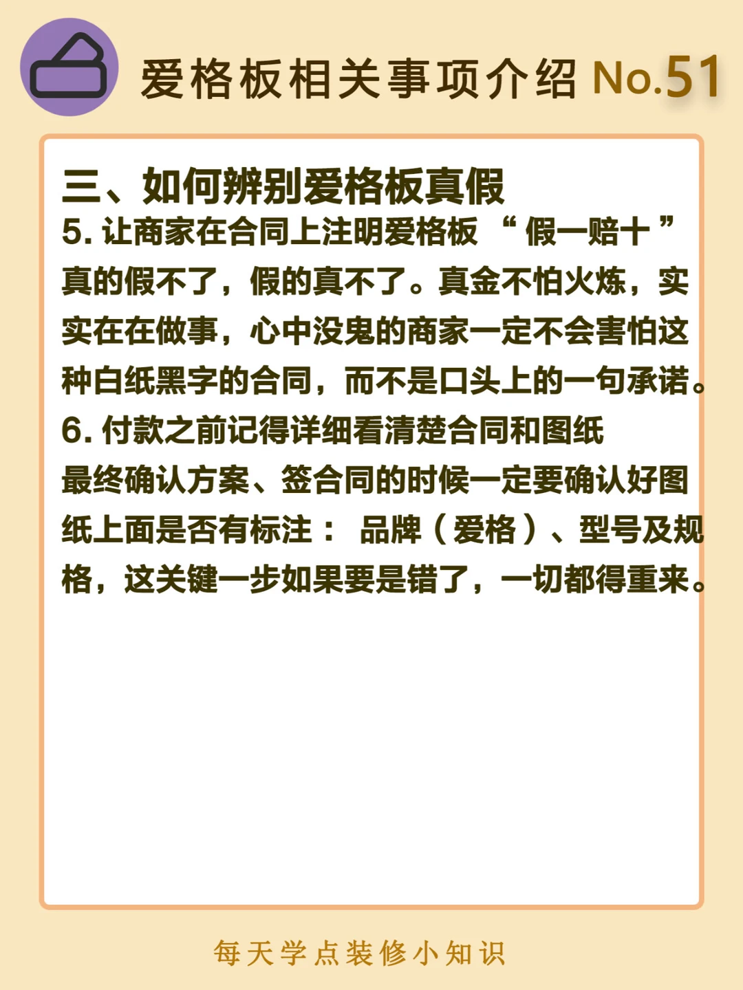 5.让商家在合同上注明爱格板“假一赔十”