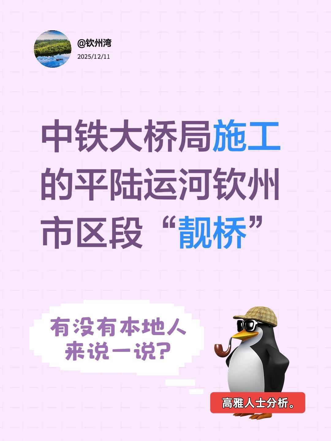 我评论了@明月清风的作品: 中铁大桥局施工的平陆运河钦州市区段“靓桥”
