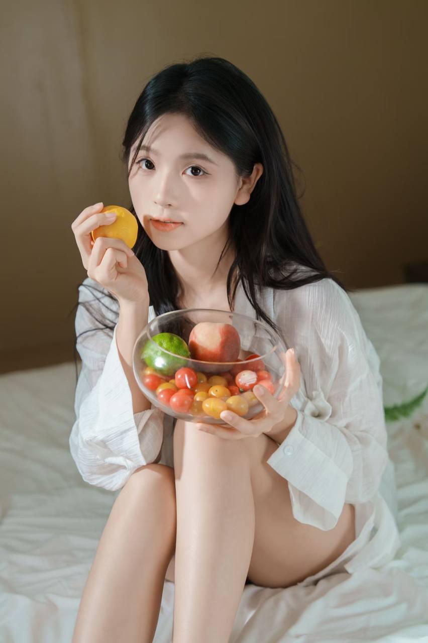 阳光明媚的午后少女与水果相伴🍊🌞💕美少女 分享美少女倩影 自然清新美少女