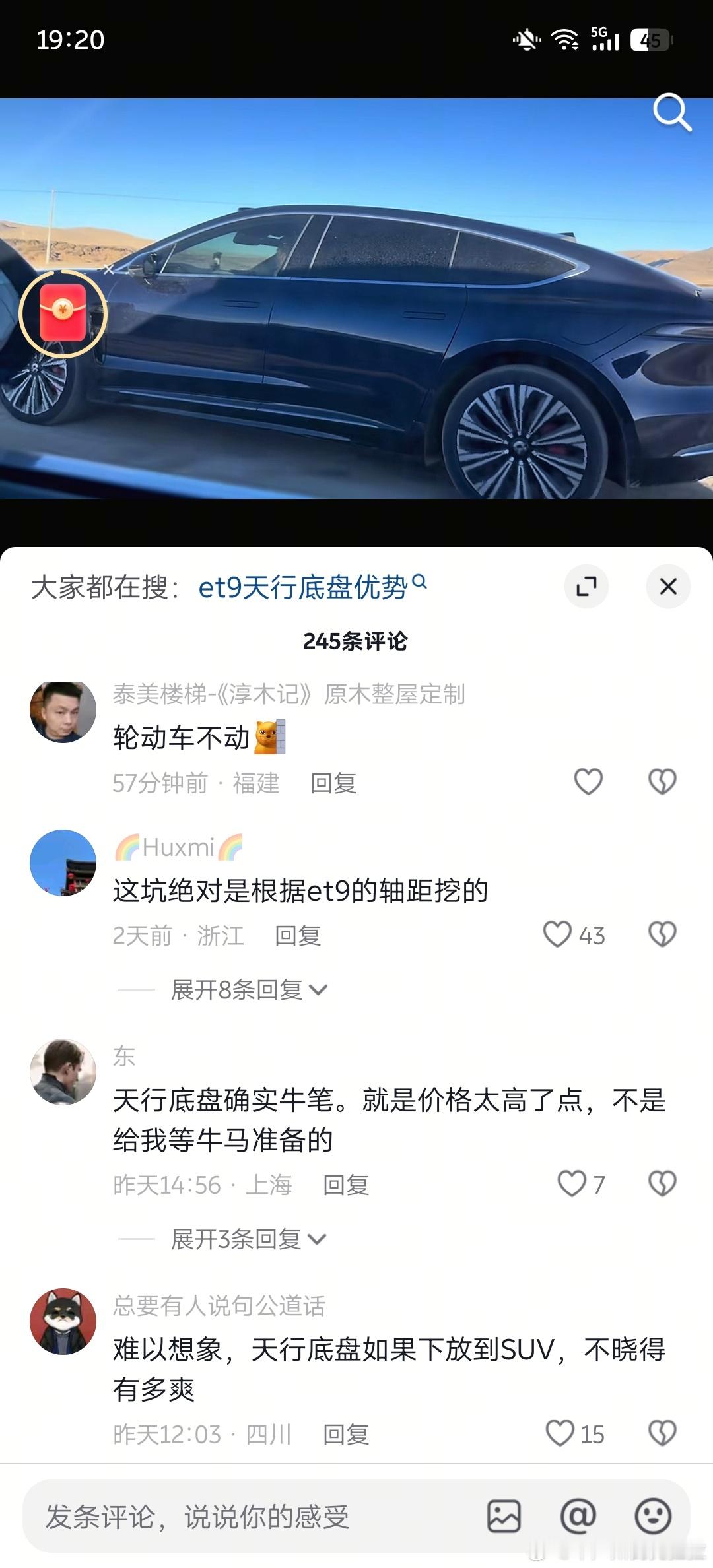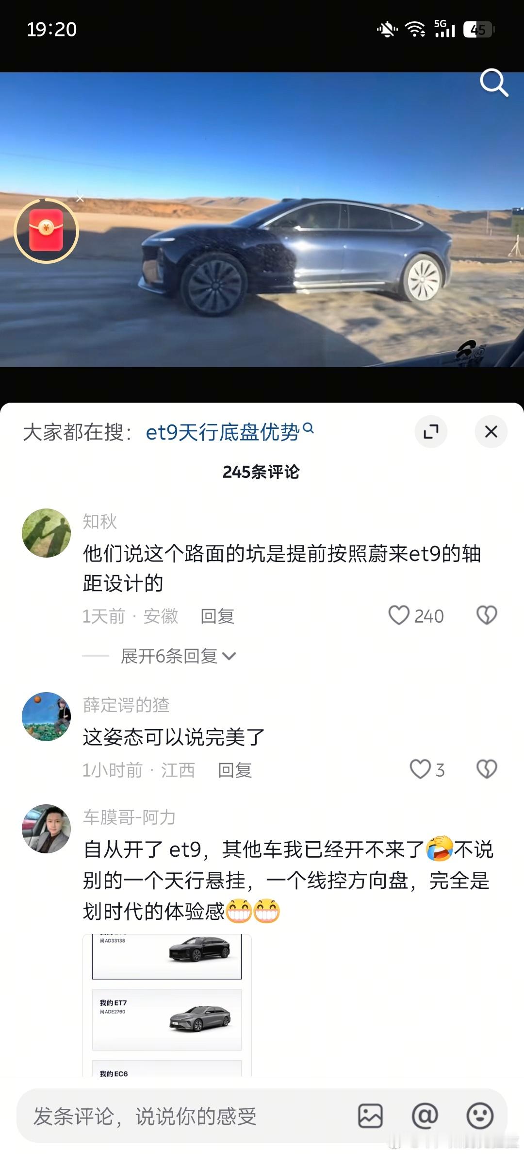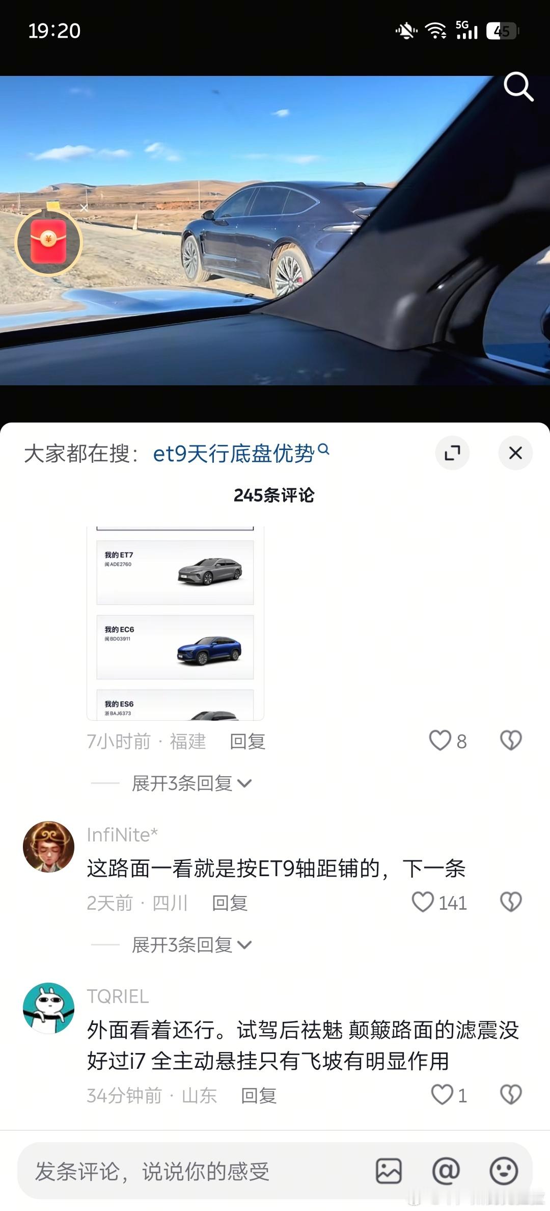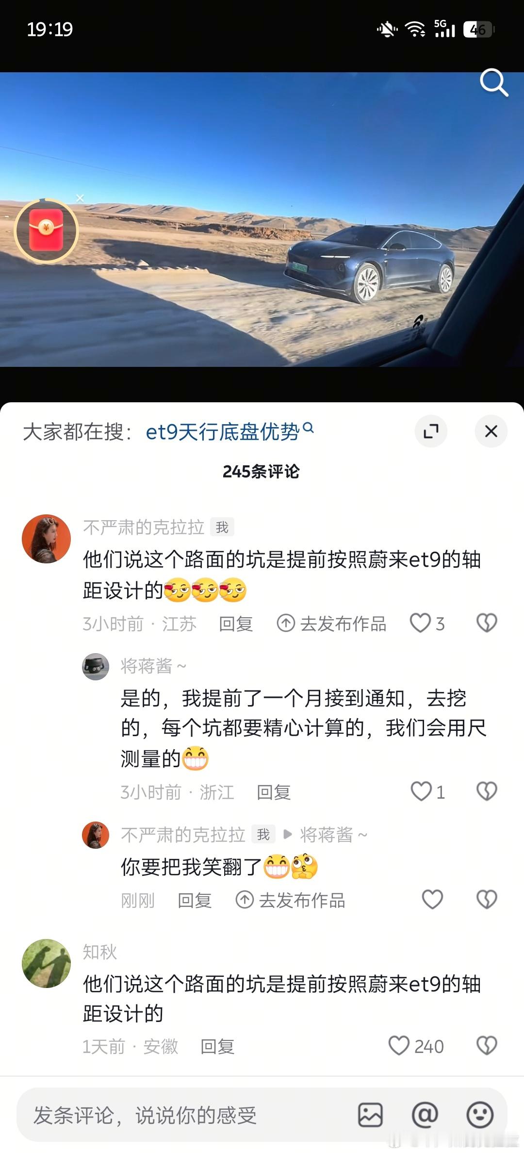 我的妈呀 偶然间刷到个 ET9 勇闯我也不知道勇闯哪里 反正看这路况是勇闯了就当是勇闯天涯了底下评论区报复心也是很强啊:全部都在阴阳怪气 ET9 当年发布的时候 黑子的话术「这路就是按照 ET9 轴距铺的」还是那句话网友也不是傻子带节奏的人 也不能把网友当傻子大v聊车