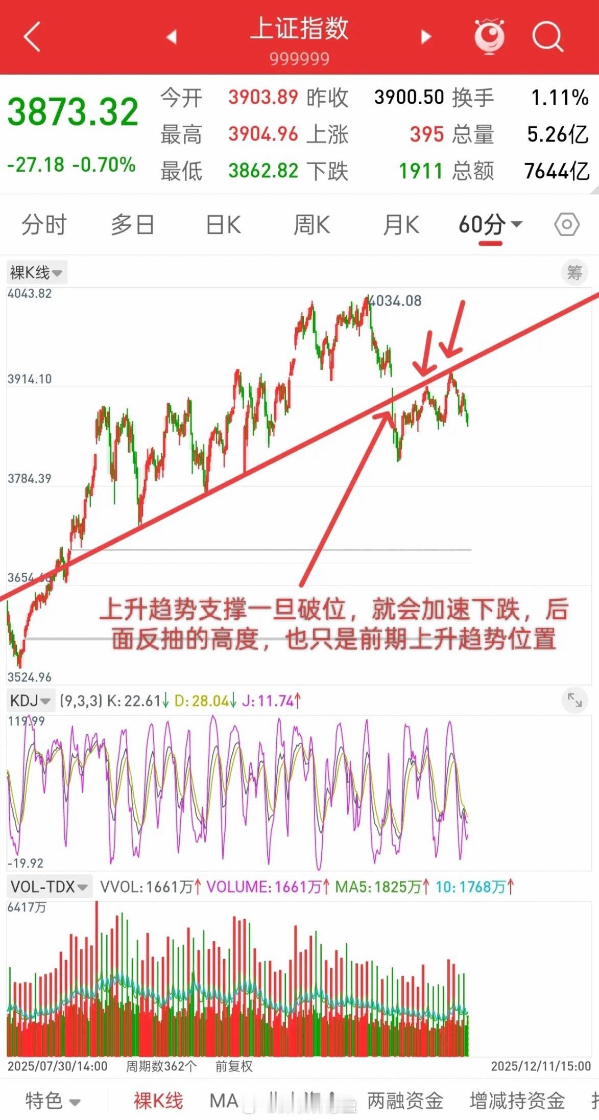 A股,每一次降息,行情总是惊人的相似!从9.18号美联储降息,大盘冲高回落,洗盘四天,开启新一波行情,到10.30号美联储降息,大盘冲高回落,洗盘四天,开启新一波行情。今天也是一样,降息后,洗盘第一天,好在昨天下午和晚上提示了好几次,认可我观点的人,应该是能规避这一波的。那接下来怎么看,先说观点,今天大盘已经跌破3816-3859上升趋势支撑,大概3885附近,包括5-10-20-30日均线,全部跌破。如果明天出现反弹,以及收盘,不能站上五日线,甚至3885上方,洗盘依然没有结束。下方看到哪,我个人偏向于3840,和3780两个位置附近。