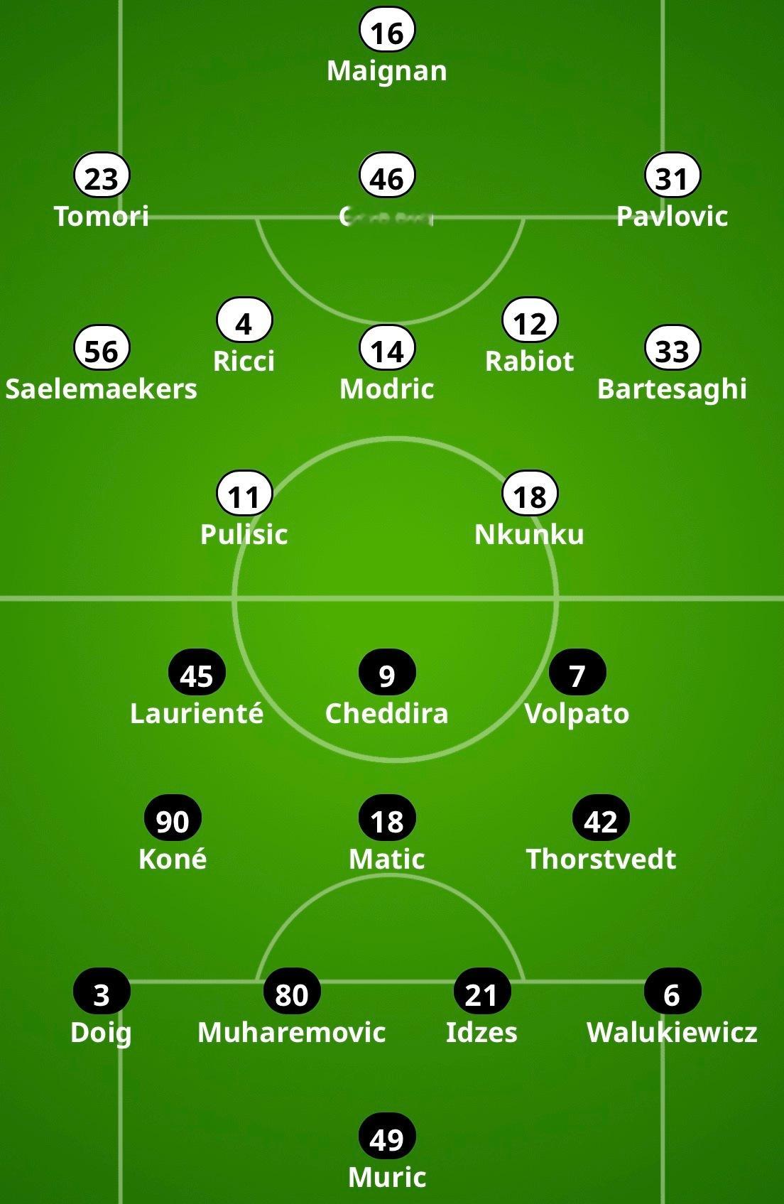 【米体】该媒体给出的2025-26赛季意甲联赛 第15轮 -🔴⚫️米兰主场对阵萨索洛队「预计首发阵容」第①版本(352):普利西奇🇺🇸、恩昆库🇫🇷组成双前锋;巴特萨吉🇮🇹、拉比奥特🇫🇷、莫德里奇🇭🇷、里奇🇮🇹、萨勒马科尔斯🇧🇪组成五中场;帕夫洛维奇🇷🇸+加比亚🇮🇹+托莫里🏴的三中卫组合;Forza Milan!👊🏻sempremilan