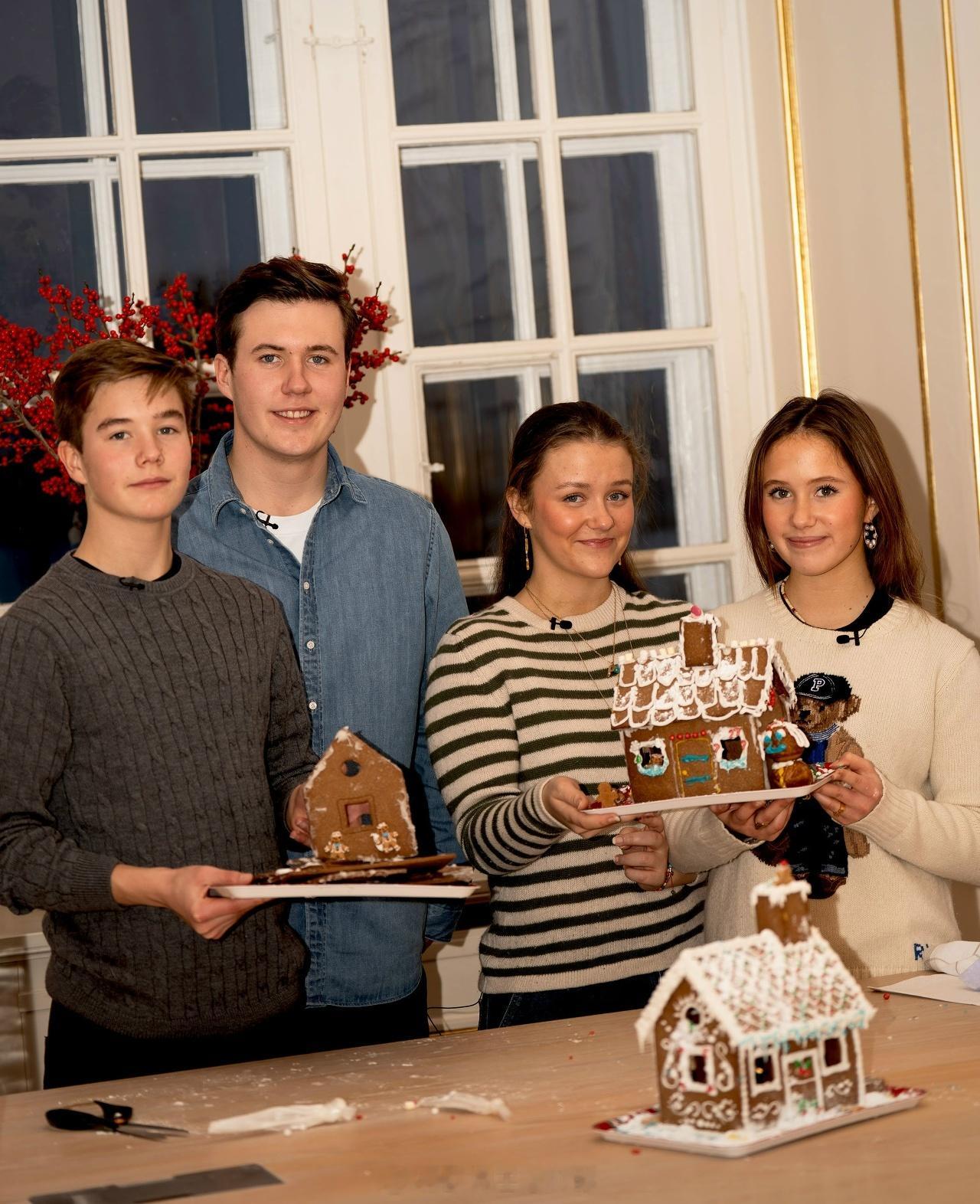 近日,丹麦克里斯蒂安王子、伊莎贝拉公主、文森特王子和约瑟芬公主在家做姜饼屋。感觉更像是他们10年前会摆拍的活动