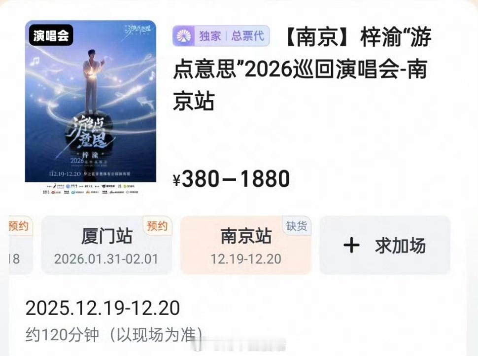 梓渝演唱会抢票说起梓渝演唱会抢票,满是又紧张又期待的滋味。提前调好闹钟、检查好网络,甚至连付款方式都反复确认,可真正到开票那一刻,还是会忍不住手抖。看着页面上“排队中”的提示,心里既盼着又慌着,生怕陪跑收场。当“购票成功”的弹窗弹出时,那种雀跃感直接冲上头顶,所有的紧张都变成了奔赴现场的满满期待。