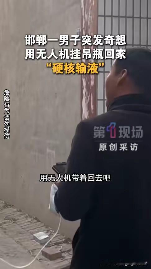 科技改变生活?玩性太大了吧! 河北某男子。输液中有急事要临时出去一下,可是挂着针又走不开,没有人给帮忙拿吊瓶。 急中生智男子用上了车里的无人机,小飞机带着吊瓶,一个手操纵无人机。就这样,很拉风地走在马路上! 依我看这是玩性太大啊,男人至死是少年。没人帮忙,你拿个杆子不行吗?即便啥都没有,一只手举着也行啊!输液奇葩事件 生活里的科技 输液奇闻 输液玩手机 看病黑科技