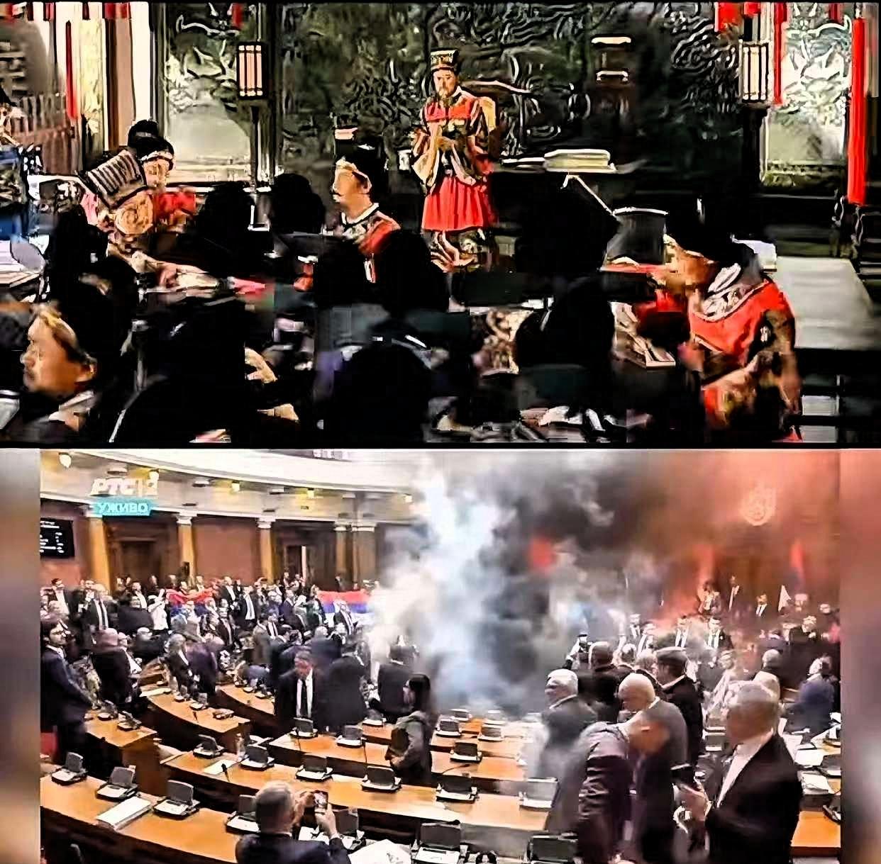 你就说吧,一个敢在早朝上打群架的朝代,他再封建能封建到哪儿去? 古代官场并非全是一团和气,明朝官员对政事有不同意见时,争论起来常常格外激烈,情绪上来便顾不得朝堂礼仪,出现互相推搡甚至殴打的情况。 官员们对朝堂上的事十分上心,即便有休息时间,也常会关注朝堂动态,担心错过重要的政事讨论,或是没能参与到相关的争议中。 历史上1449年、1566年,就曾两次出现官员在金銮殿上互殴的情况,也正因当时朝堂纷争的激烈与复杂,《大明王朝1566》这部作品才能凭借对史实氛围的还原,成为广受认可的经典。 除了朝堂上的争执,官员间的矛盾还会延伸到私下。比如写下“滚滚长江东逝水”的杨慎,就曾因政见不合,带人在下班路上拦截当时的首辅张璁,张璁无奈之下,只能加快脚步尽快回家躲避。 还有官员为了在争执中不吃亏,特意将上朝用的笏板换成质地坚硬的榆木材质。即便明朝朝服袖口较长,行动多有不便,也没能阻碍官员们在情绪激动时发生冲突。 就连皇室成员间也有过过激举动,王爷朱高煦就曾在公开场合,对皇上朱瞻基做出过扫堂腿这样失礼的行为。 这些看似不够规矩的表现,背后其实是明朝文官群体的责任意识与抗争精神。他们对政事秉持着较真的态度,不愿轻易妥协退让,哪怕用激烈的方式,也要坚持自己认为正确的主张 这种敢说敢争的特质,让明朝朝堂少了些沉闷压抑,多了些鲜活的棱角,也体现出封建时代文人并非全都唯唯诺诺,仍有不少人坚守着自己的立场与底线。