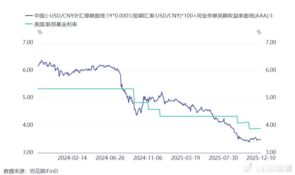 美联储降息了!但A股更在意的事是TA老读者都知道,我一直都笃定美联储会连着降息三次。12月也必定会降息。所以即便中途美联储意外放鹰,我也一点不在意。议息会议落地,降息随之落地。但市场市场却吃了一碗面,这又是怎么回事呢?老读者都知道,我之前就分享过,当降息落地后,全球很多对冲基金的策略很可能会发生改变,这就会导致短期出现无法理解的扰动。昨天日本股市和韩国股市也同样有异常波动。比如,日经指数在午后开盘就有一个直线跳水,然后是分时线走平。所以,还是让子弹多飞一会吧。市场需要时间来消化新的环境因子。现在影响市场的已经不是12月的降息了。有更重要的事需要关注。一、央行的态度更为关键美联储降息,属于增量资金政策。也就是说,海外有增量资金将回流国内。但当资金回流到家门口时,央行可以放它们进来,也可以把它们挡在门外。当然,完全放行和完全阻挡都不是央行要做的。央行要做的是控制好放行的速度!否则一窝蜂的回流,容易引发金融市场波动并导致物价失控。而回流过慢,又不利于内需复苏。我们如何观察央行的态度呢?二、从三个变量判断央行态度跨国资金回流的速度主要取决于中美利差。不过,不能用人民币计价的利率跟美元计价的利率进行直接对比。单位要统一,才有可比性。比如,不能直接用人民币计价的10年国债和美国的10年国债进行对比。而应该用财政部在离岸市场发行的美元国债去对比。美元计价的利率跟掉期组合的利率相近。见下图。等美联储降息后,联邦基金利率会从3.89%降到3.64%,掉期组合的收益率是3.5%左右。也就是说利差收窄了,那么资金回流就是大趋势。至于回流的速度则要看掉期组合的收益率相对联邦基金利率是上行还是下行。如果是上行,回流的速度会加快,如果是下行,回流的速度就会被抑制。掉期组合收益由什么决定呢?由三个变量决定:1.即期汇率;2.远期汇率;3.市场利率。(这里用的是1年同业存单利率)如果要回流速度加快,最佳的状态是:即期汇率升值+远期汇率贬值+市场利率上升。从昨天的情况看,即期汇率有所升值。甚至人民币突破新高。这是积极的信号。远期汇率有所贬值。不过远期汇率已经横盘震荡两个月了。1年同业存单利率小幅上行。这就说明,央行小幅度的放任了资金回流。如果央行跟随美联储降息,就不是好事。之前跟大家分享过,我不认为央行会跟,即便跟,降息的幅度也会小于美联储。未来,我们要持续跟踪这三个变量,从而搞清楚央行的态度。其实从央行的货币执行报告,已经前天跟大家分享的潘行长的文章就已经知道基调了。一切就是要稳。也就是会让跨国资金有节奏的回流,人民币缓慢升值。所以对应的就是慢牛行情。(主要是指沪深300的慢牛行情)三、美联储的后期动作也很重要在美联储降息后,鲍威尔给出的预期是,2026年和2027年分别再降一次息。从跨国资金回流的角度看,美联储降息的节奏越快,幅度越大,越有利于A股。如果美国明年只降一次息,利好程度有限。但我并不认为只降一次。美联储常常都是说一套做一套,从而迷惑人心,达到管理预期的效果。我们更应该从立场来分析!鲍威尔有一句话值得关注,大概意思是:保持实际薪资更高,名义工资高于名义通胀,才能让美国人感觉到对于物价可负担。从这个表述就能看出,美联储不是只顾着压通胀,而是更看重工资增长。所以,明年降息的次数大概率不会只有一次。此外,我们更应该考虑的是,明年5月后,鲍威尔就要卸任,等换上特朗普的亲信后,你觉得他会做啥呢?特朗普为了中期选举,降息是首选。搞不好会有很激进的降息。咱们要适应美联储这种左右摇摆的表演,抓住主要矛盾即可。此外,美联储还将扩表。扩表对A股意味着什么呢?降息是有利于跨国资金回流。这里的跨国资金主要是指东大贸易顺差留在海外的资金。扩表则意味着外资水池中的水量变大,那么外资也会在未来给A股添火。而且呀,以美国现在的境遇,恐怕未来搞QE都是大概率事件。因为AI泡沫需要资金维系,就业市场也需要资金补充,特朗普的选举也需要积极的货币政策。不过QE需要事件催化!这里需要注意的是,美国降息过于激进也可能带来流动性冲击,因为资金有可能会突击性外流。不过,一旦出现这种冲击,QE几乎就是板上钉钉了。所以,福兮祸所依,祸兮福所伏。市场短期的波动都是随机的,不用太在意,看准大趋势即可。如果你去统计一下就会发现,企业一份超预期好的财报发布,股价涨跌的概率各一半。这就是市场。短期就跟个神经病差不多!