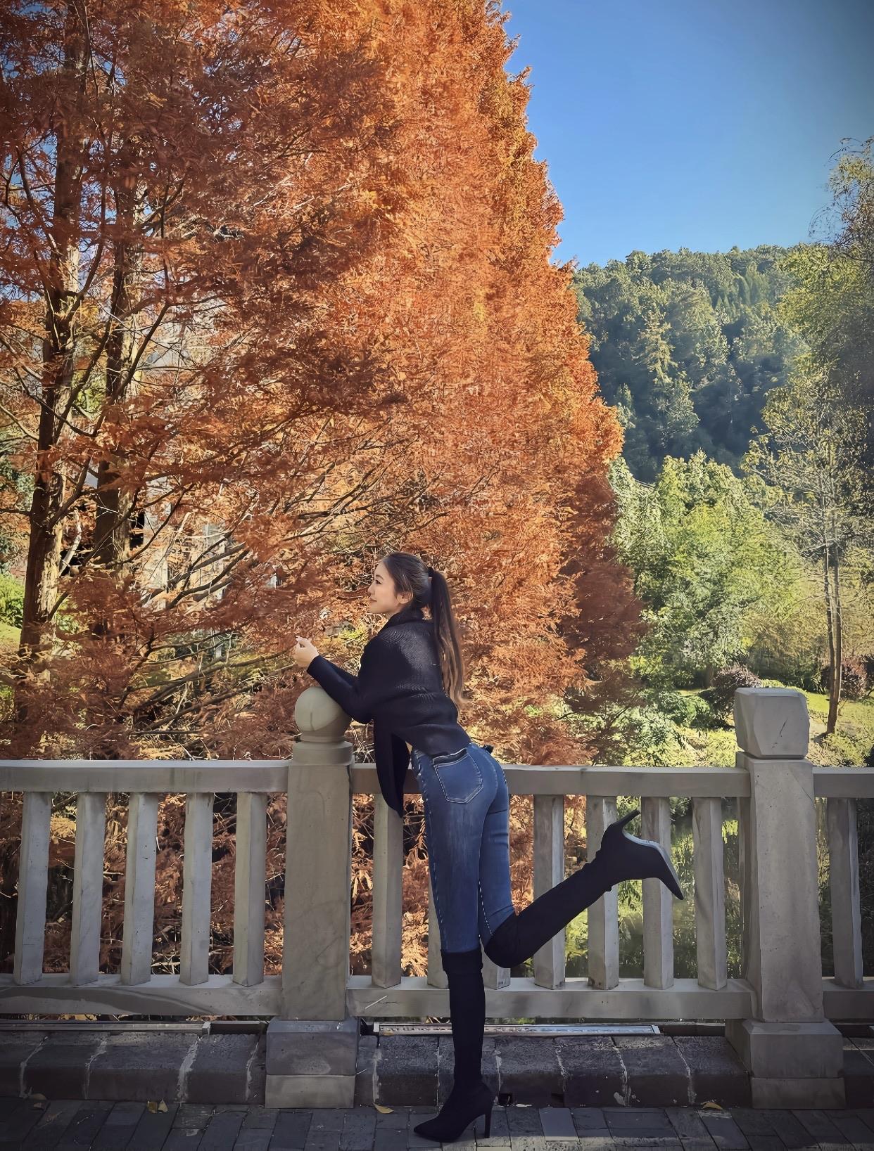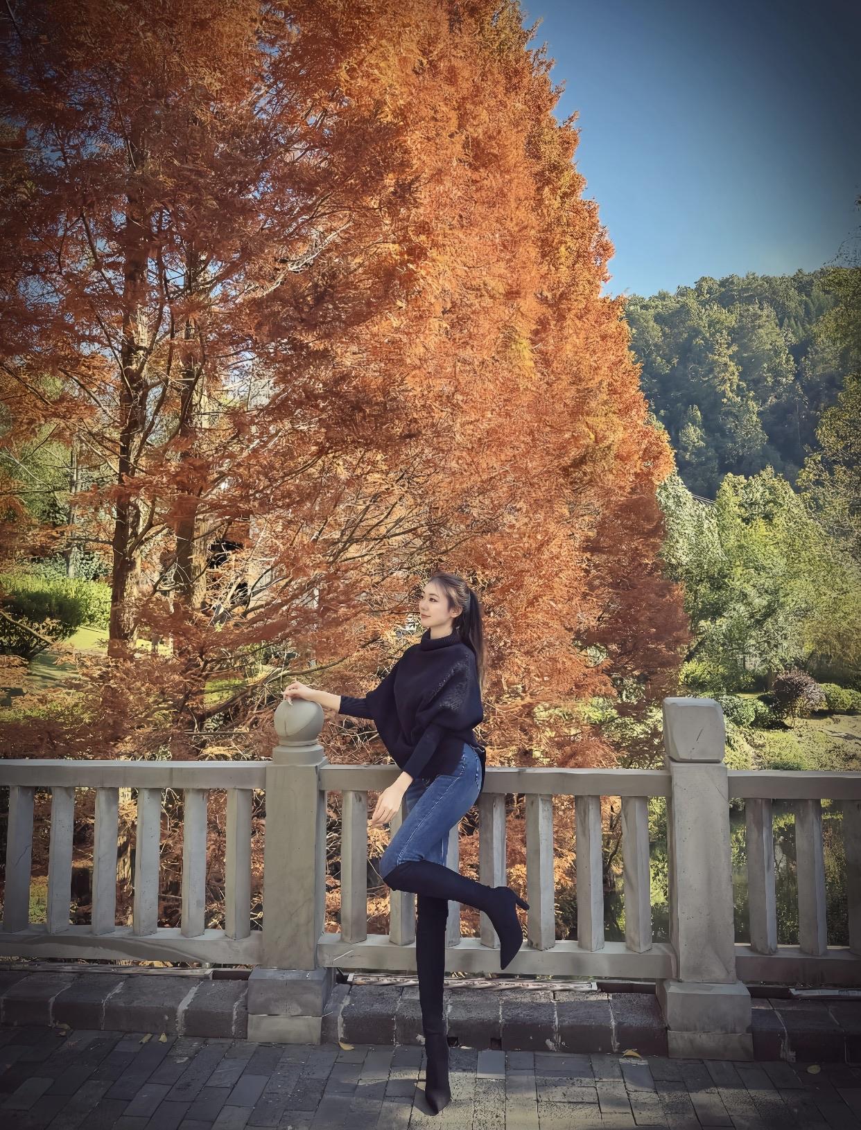 什么样的穿搭可以成为气质女神?秋日暖阳下,优雅女子轻抚发丝,漫步在金黄的树影间。