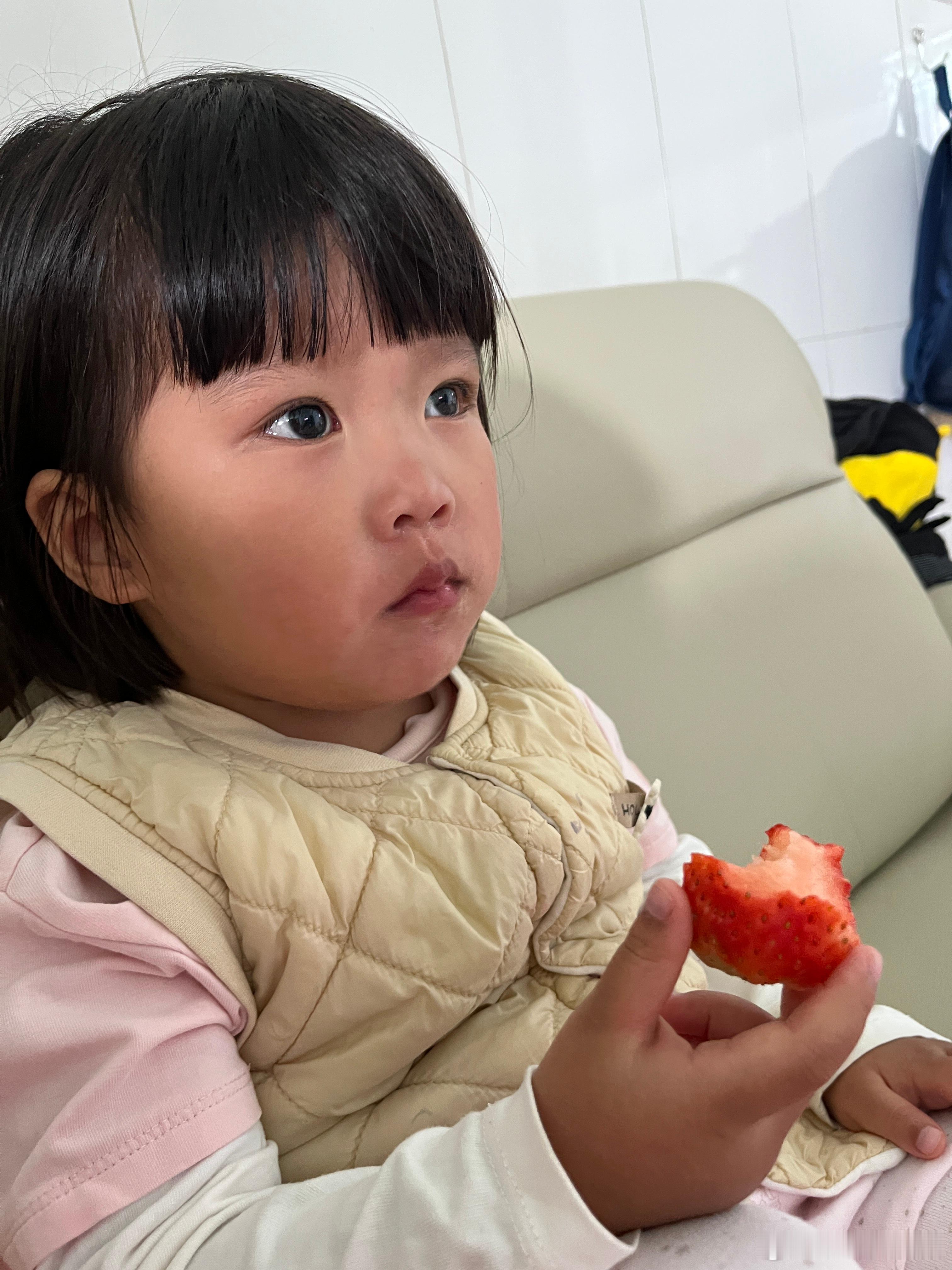 给她买了几个草莓,好贵,40一斤,她还拼命往袋子里面放,我说够你吃就行,妈妈不吃。