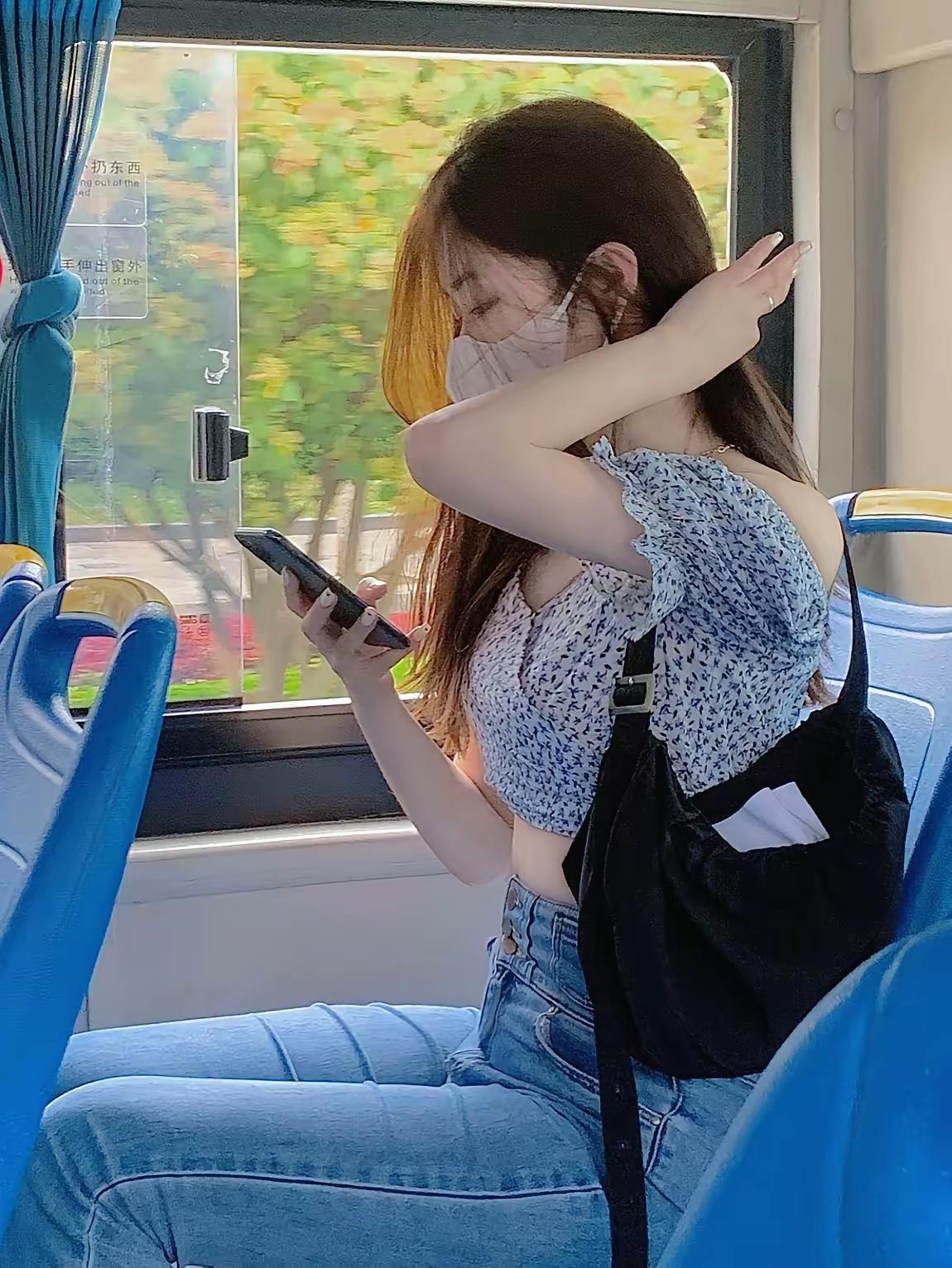 🚌 在公交车上,享受悠闲的时光,手机相伴,风景入眼。怎样穿搭能显示出温柔的女生气质?