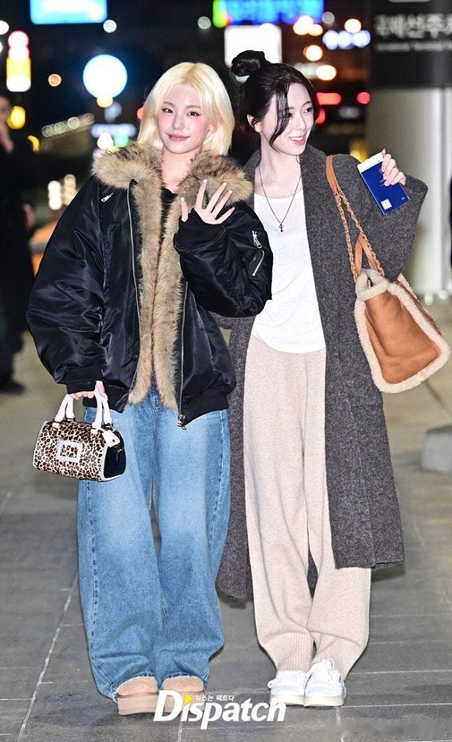 12日,ITZY成员申有娜黄礼志 经金浦机场出发,前往日本出席海外日程。