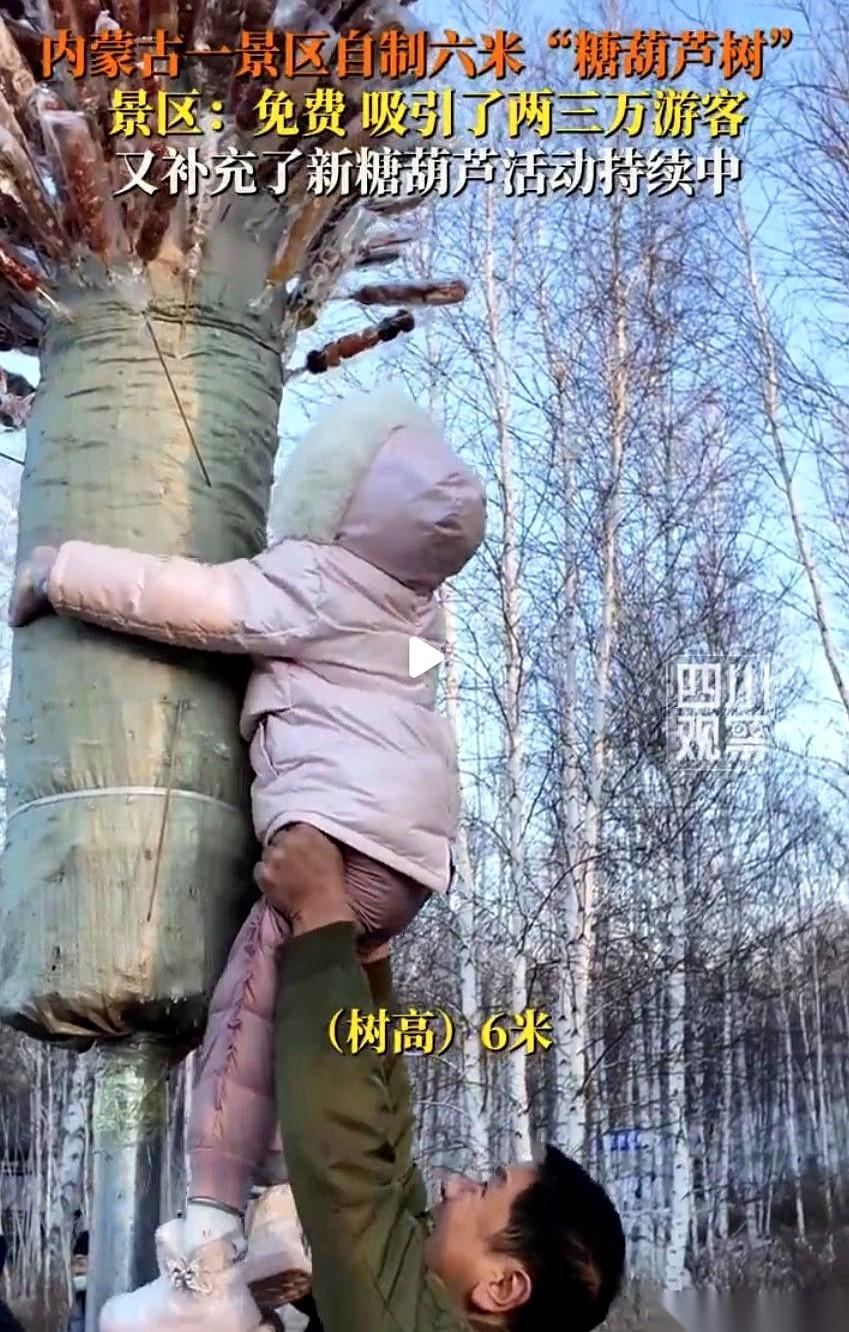 内蒙古有几棵树,六米高,上面不长叶子,长满了糖葫芦。 谁都能摘,不要钱。 摘完了,人家就再给你挂满。 说实话,我第一反应是:这又是啥套路?是不是在测试人性?等着拍视频看谁贪心拿一堆? 毕竟咱们见过的“免费”太多了,背后全是钩子。 结果看了半天,发现自己格局小了。 人家就是单纯的办个“开雪节”,想让来的客人都高高兴兴的,感受一下北方的豪爽和实在。 这事儿牛逼在哪? 不是那几根糖葫芦值多少钱,而是这种不跟你计较、把你当朋友看的感觉,在今天太奢侈了。 我们已经习惯了扫码、关注、领券、被各种算法算计。我们去一个地方,首先是“消费者”,然后才是“游客”。 突然有人直接把美好怼你脸上,告诉你:别客气,随便拿,我们管够。 那一瞬间,你感受到的不是占了小便宜的快乐,而是一种久违的、被真诚以待的温暖。 真的,这几棵挂满糖葫芦的树,比一百个华丽的广告牌都有力量。它一下子就让你记住了这个地方的气质。 有些东西,钱买不来。 比如这种“我们这儿就这样,敞亮”的底气。
