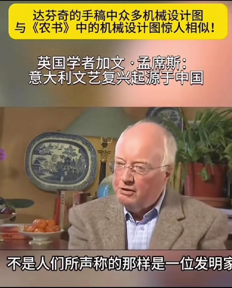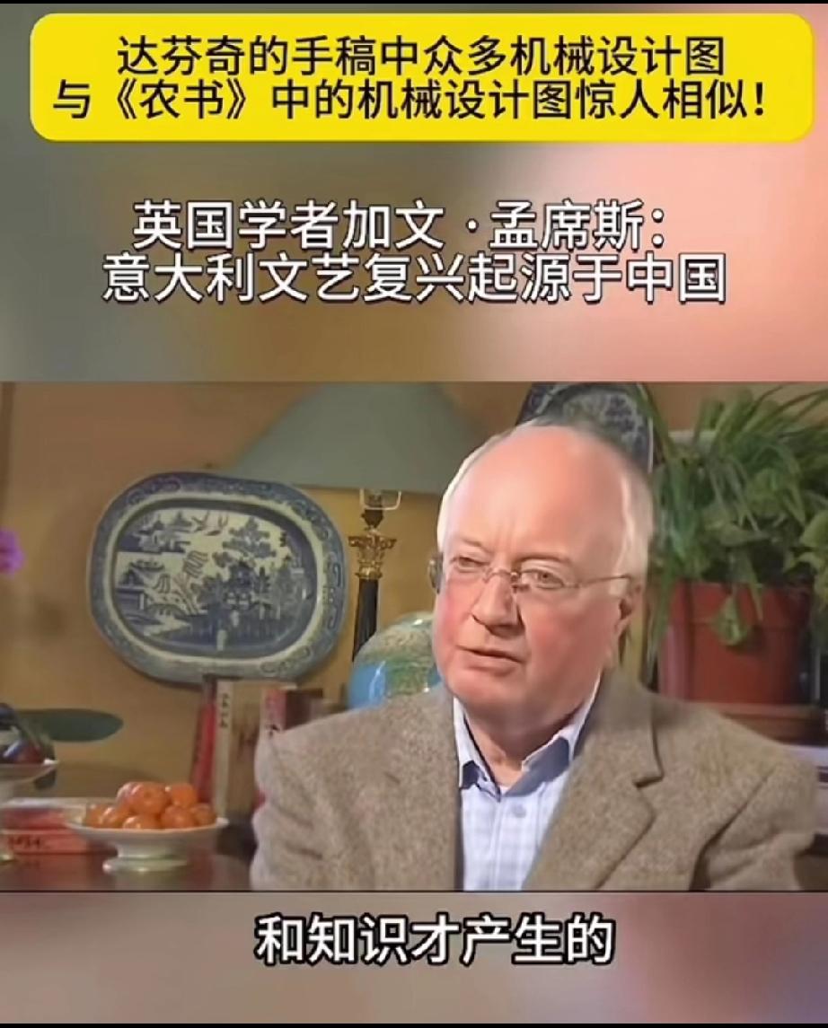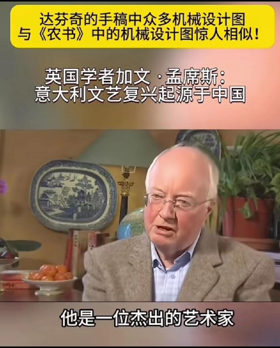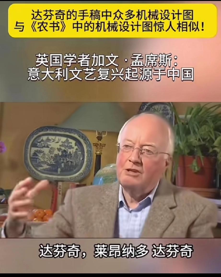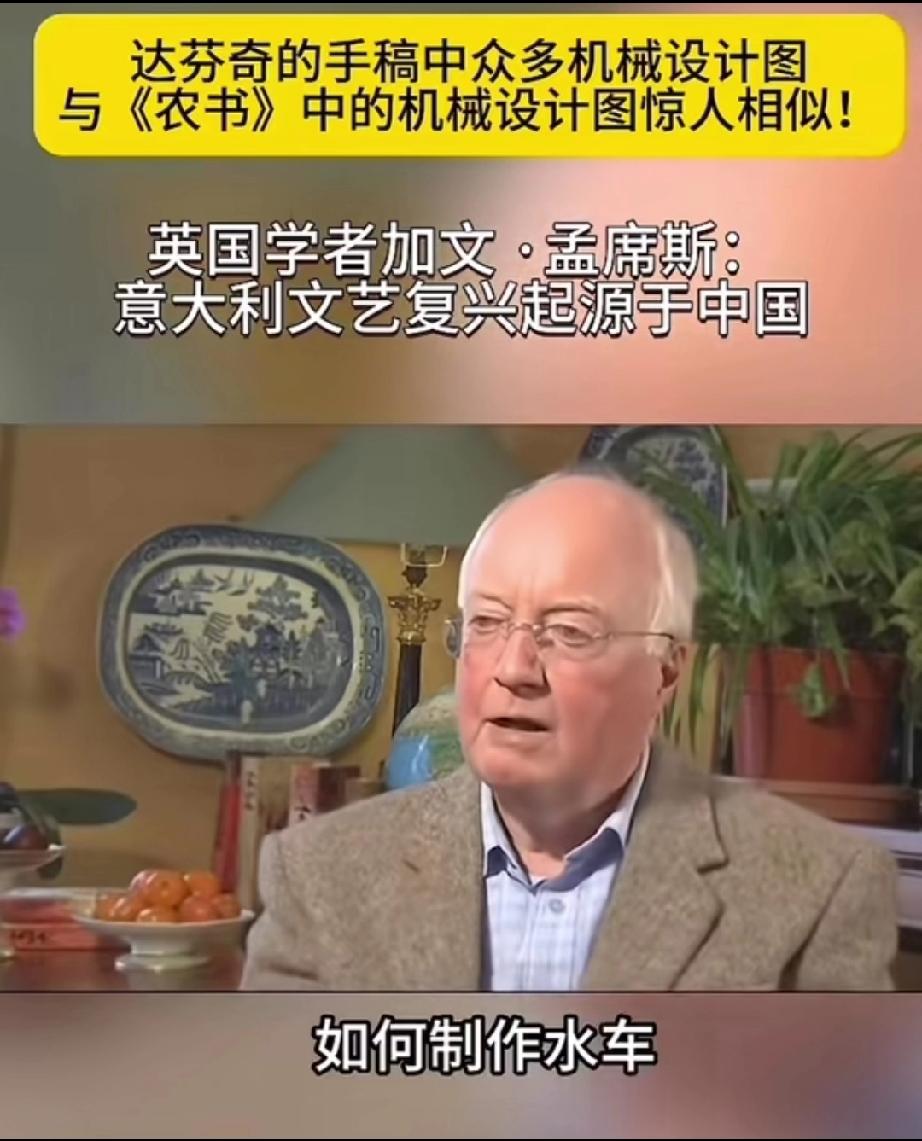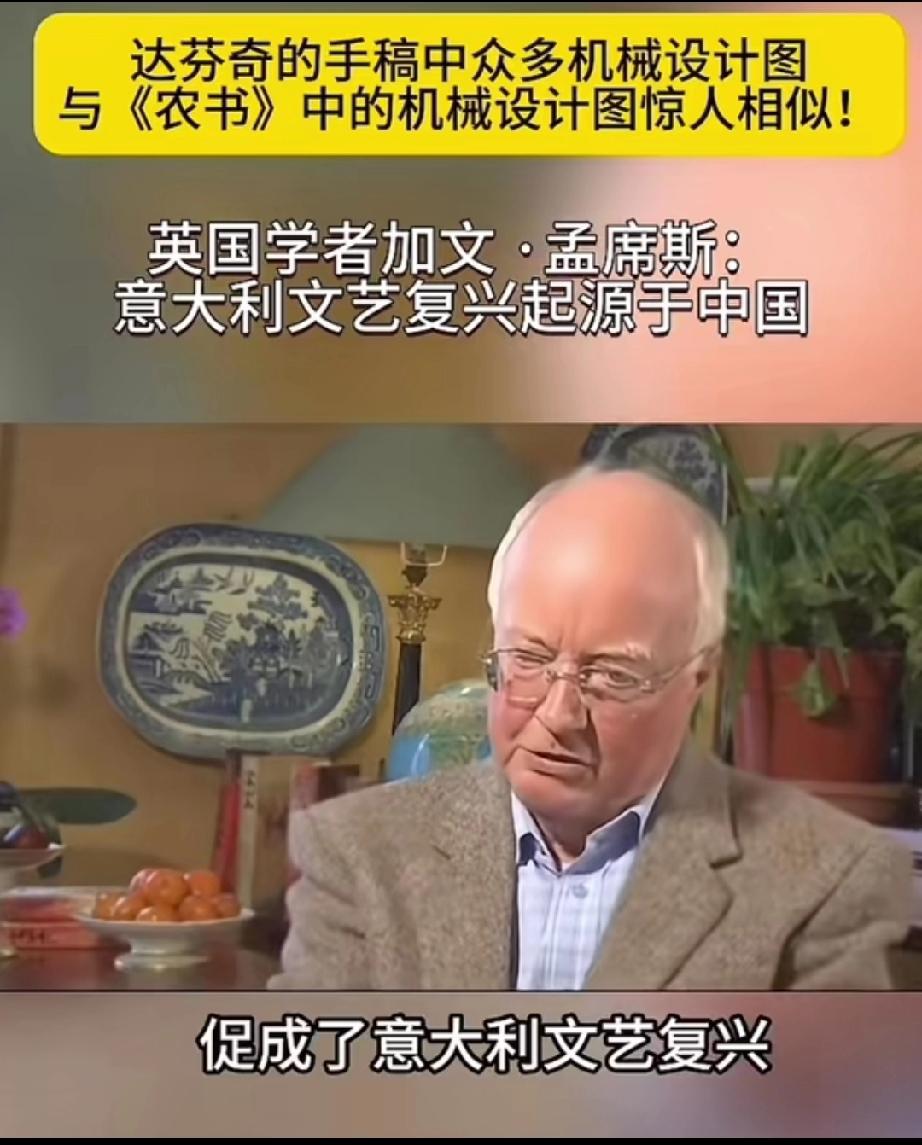 英国学者加文-孟席斯在一档有关西方文艺复兴讨论的栏目里说,意大利的文艺复兴起源于中国,并且他还拿出了证据! 大意就是说,文艺复兴之前西方的传教士去到了中国,他们带来了一本叫做《农书》中国书,农书上面有成百上千张图片,都是关于农业机械的,有教你如何制作水车的,如何制作水管、耙子,以及各种工具,甚至还有如何制造炼钢炉等等!意大利人就是照着书上说的做了才制造出来当时西方没有的各种机械! 他还说莱奥纳多 达芬奇不是人们声称的所谓发明家,相反他是一位改进技术方面的艺术家,因为他拿到了当年意大利的中国图纸的副本,并且极大的改进了它们! 所以他最后总结说,意大利的文艺复兴,实际上是因为中国图片上面的大量机械和知识产生的! 大家觉的这位英国学者说的话可信度高吗?