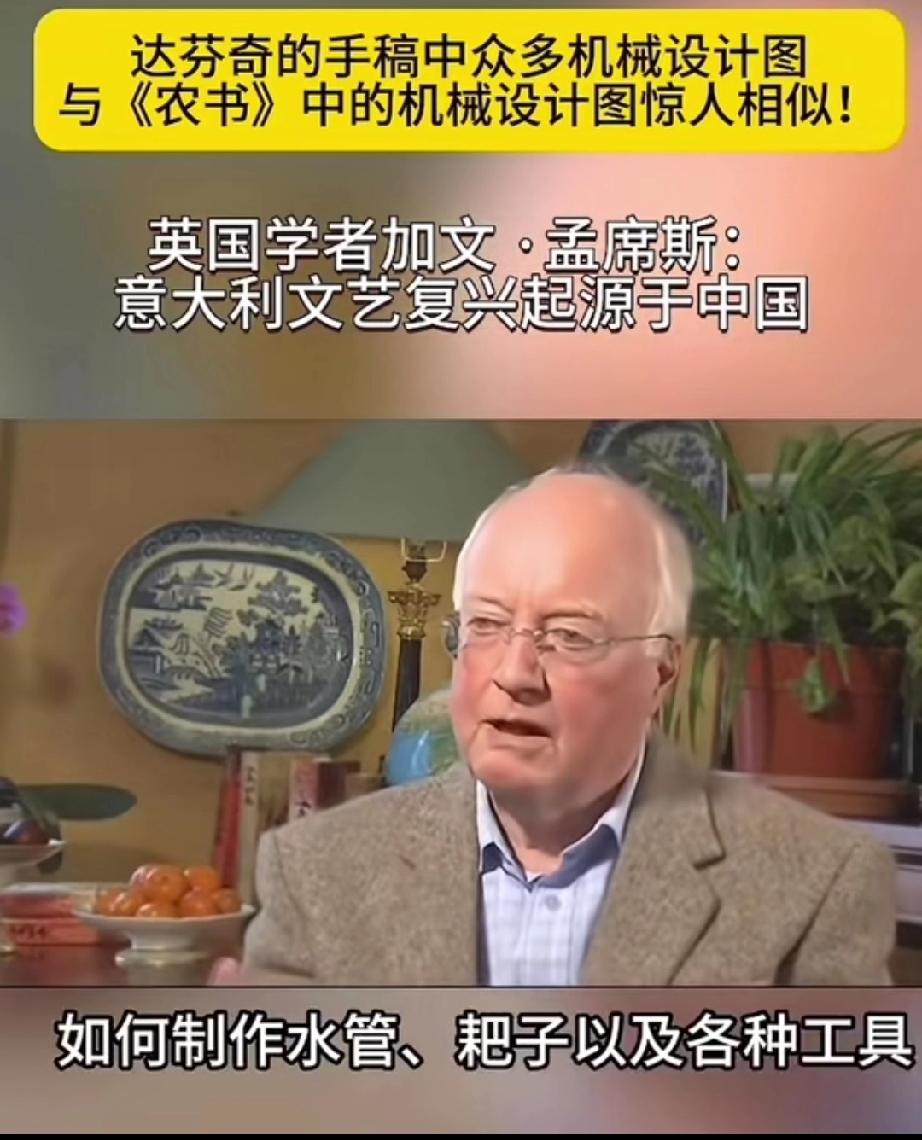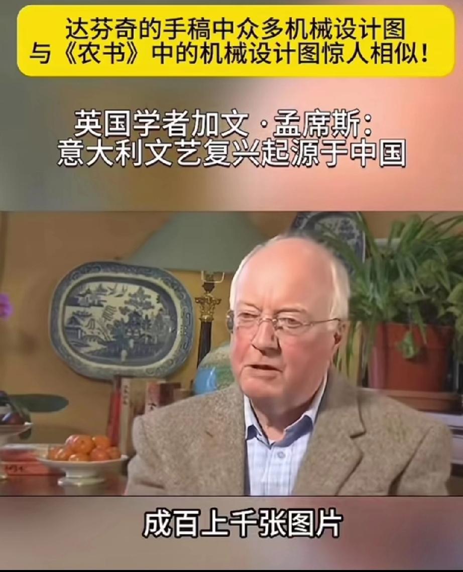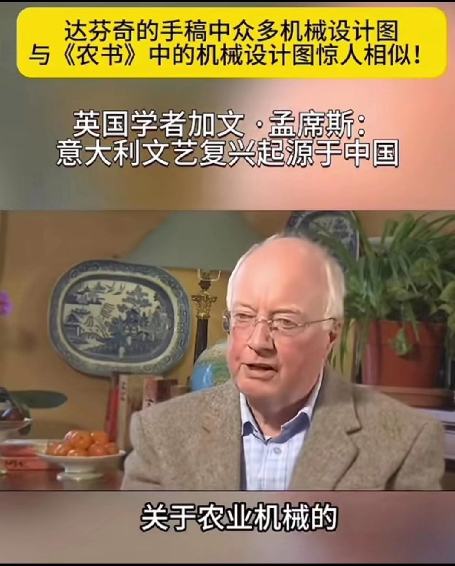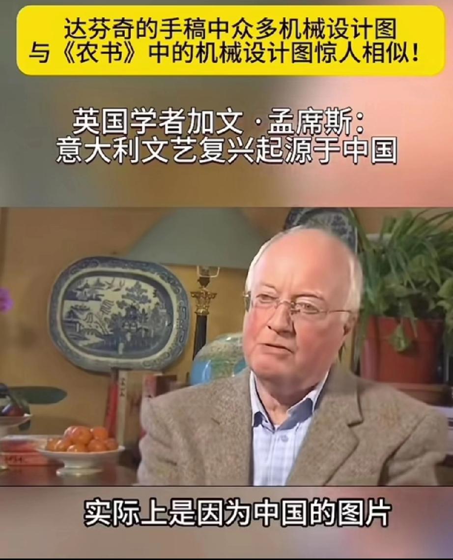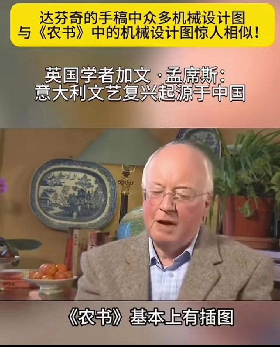 英国学者加文-孟席斯在一档有关西方文艺复兴讨论的栏目里说,意大利的文艺复兴起源于中国,并且他还拿出了证据! 大意就是说,文艺复兴之前西方的传教士去到了中国,他们带来了一本叫做《农书》中国书,农书上面有成百上千张图片,都是关于农业机械的,有教你如何制作水车的,如何制作水管、耙子,以及各种工具,甚至还有如何制造炼钢炉等等!意大利人就是照着书上说的做了才制造出来当时西方没有的各种机械! 他还说莱奥纳多 达芬奇不是人们声称的所谓发明家,相反他是一位改进技术方面的艺术家,因为他拿到了当年意大利的中国图纸的副本,并且极大的改进了它们! 所以他最后总结说,意大利的文艺复兴,实际上是因为中国图片上面的大量机械和知识产生的! 大家觉的这位英国学者说的话可信度高吗?