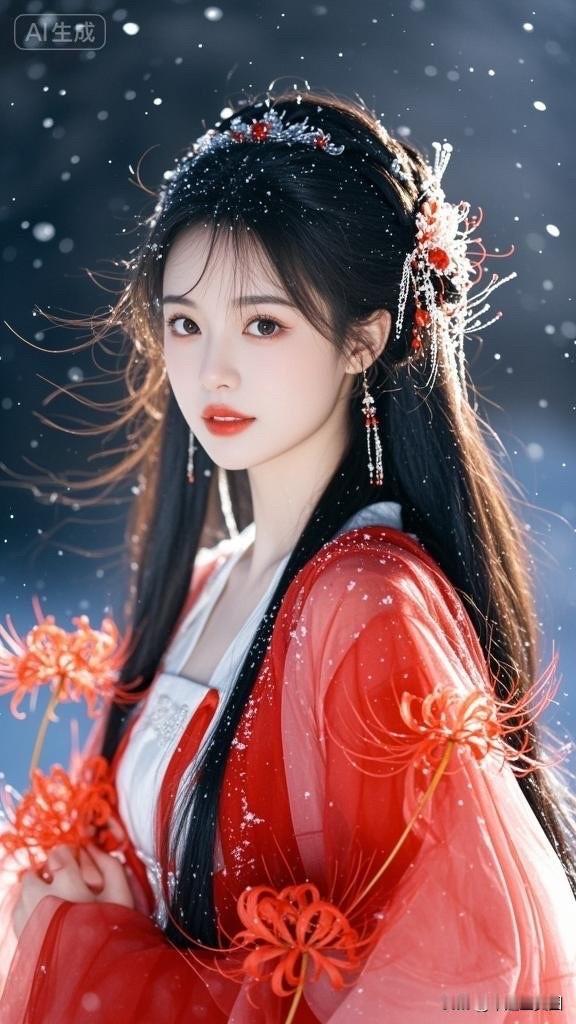梦幻蓝调,唯美少女,风中飘逸,AI生成,惊艳视觉!
