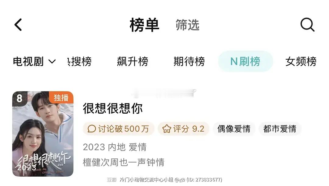 檀健次、周也很想很想你n刷榜第八,长尾很好的小甜剧