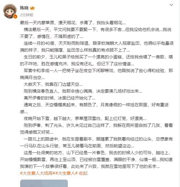 陈晓发文告别大生意人陈晓发文告别大生意人!这部剧结束的有点快啊,上星剧就是这样的