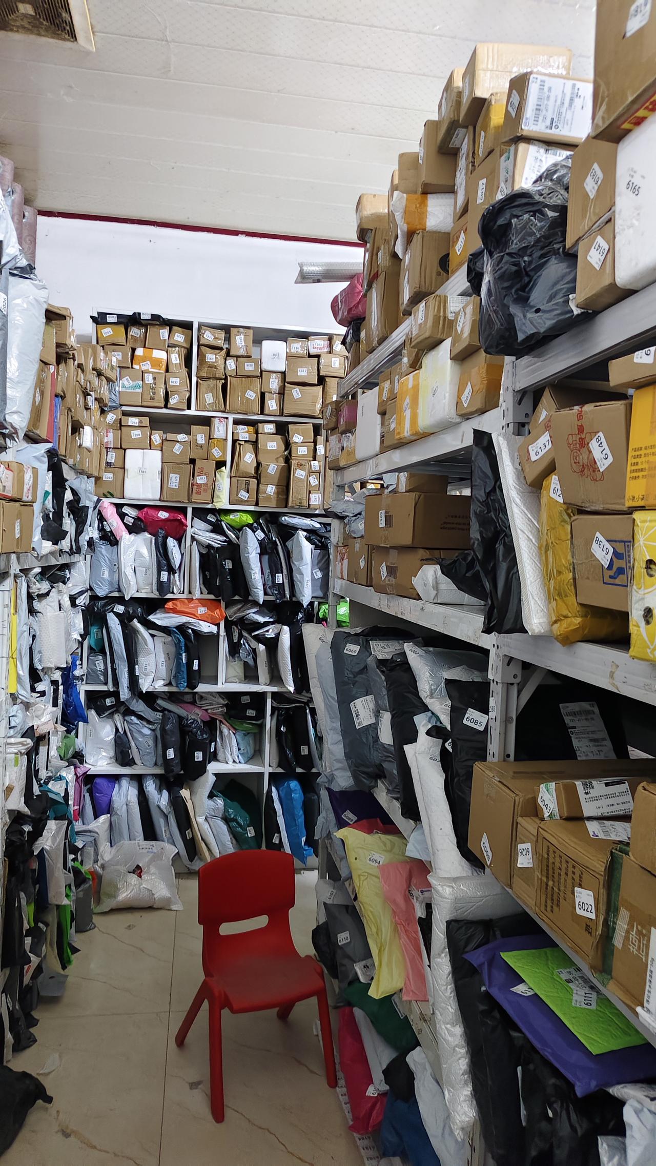 走进这间快递存放点,第一感觉就是被包裹“包围”了。 货架从地面一直堆到天花板,纸箱、防水袋裹着的快件层层叠叠,左边的货架上是各式软包装的包裹。 右边则摞着大小不一的硬纸箱,标签上的数字和条码密密麻麻。 过道只留了窄窄一条,中间摆着一把红色塑料椅,在满是快件的空间里格外显眼。 这里的快件没有刻意整理的规整感,却能看出是按区域或编号随意归置着。 整体就是快递点日常运转的真实模样,杂乱中透着忙碌的烟火气。