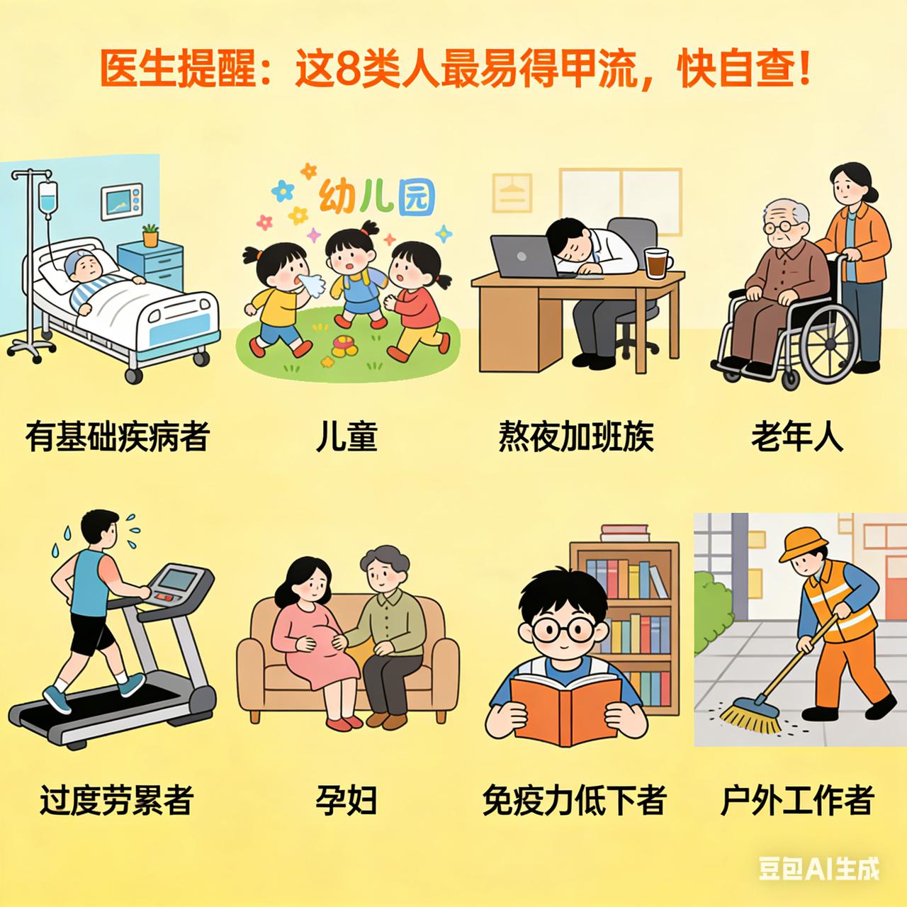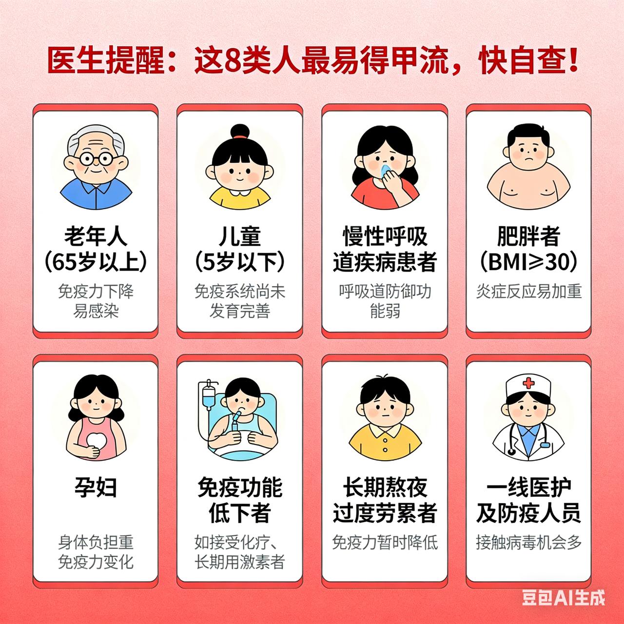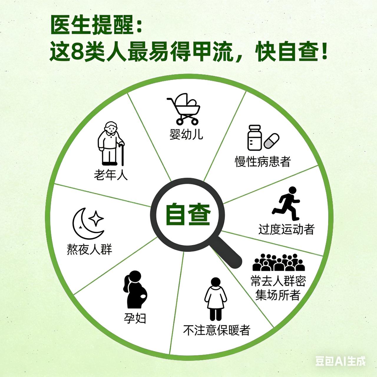 医生提醒:这 8 类人最易得甲流,快自查! 人不会无故患甲流!科学解析八大核心诱因 甲型流感(甲流)的感染是多重科学因素共同作用的结果,基于最新研究及权威医学数据,得甲流者多与以下八大科学机制密切相关: 1. 免疫屏障失效:南开大学研究证实,甲流病毒通过靶向病毒RNA保守区,利用PROTAC技术同步降解病毒核蛋白复合体,突破宿主免疫监视。老年人、慢性病患者因免疫衰老或调节异常,更易出现抗体水平不足或快速衰减,疫苗保护期缩短至6个月内。 2. 病毒变异逃逸:甲流病毒属RNA病毒,复制时因RNA聚合酶缺乏校正功能,易发生抗原漂移(如H1N1表面蛋白HA/NA突变)或基因重配。2023年《柳叶刀》研究指出,即使接种疫苗者,若毒株不匹配,保护效力降至30%-50%,且病毒可通过抗原转变引发大流行。 3. 多途径传播链:飞沫传播(1米内吸入含病毒飞沫)、接触传播(病毒在光滑表面存活4-6小时)及气溶胶传播(密闭空间悬浮超2小时)构成三维传播网络。医疗机构气管插管操作可产生高浓度气溶胶,增加感染风险。 4. 基础疾病协同效应:慢性阻塞性肺疾病、心血管疾病患者感染后重症风险提升2-3倍,其病理机制与肺络损伤、气阴两伤及毒瘀互结相关,中医药研究证实“热、毒、浊、瘀、虚”并存是病情进展关键。 5. 季节与环境诱因:冬春季低温干燥环境延长病毒存活时间,室内聚集活动增加传播概率。2025年监测显示,季节交替期人群免疫力波动,叠加防控措施调整后人员流动增加,导致感染率上升34.6%。 6. 隐性传播与无症状感染:约18.2%感染者为无症状携带者,通过日常接触(如电梯按钮、门把手)持续传播病毒,形成隐性传播链。 7. 疫苗匹配度与个体差异:疫苗保护效力高度依赖毒株匹配度,匹配时可达70%-90%,但老年人因免疫应答减弱,抗体水平下降更快,需每年接种以维持保护。 8. 社会行为与公共卫生:人群密集场所(如学校、商场)的聚集活动、不良卫生习惯(未洗手触面)及通风不足,共同构成传播风险放大器。 综上,甲流感染非偶然,而是病毒特性、宿主状态、环境因素及社会行为综合作用的结果。科学防控需多维度策略:疫苗接种、环境消毒、通风改善及个体健康管理缺一不可。