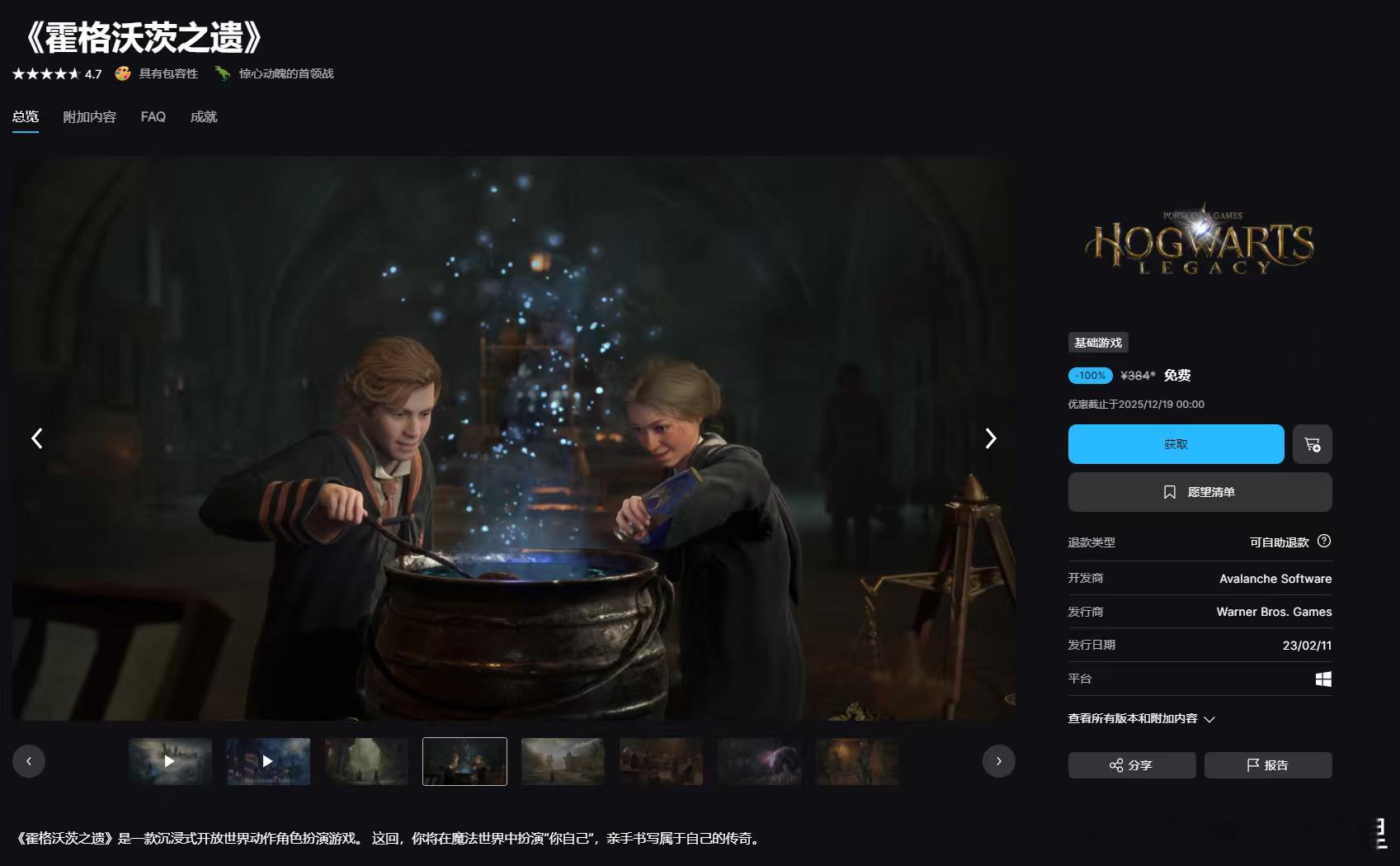 epic 免费游戏 好家伙,Epic 送霍格沃茨之遗了,想玩的小伙伴记得去领!