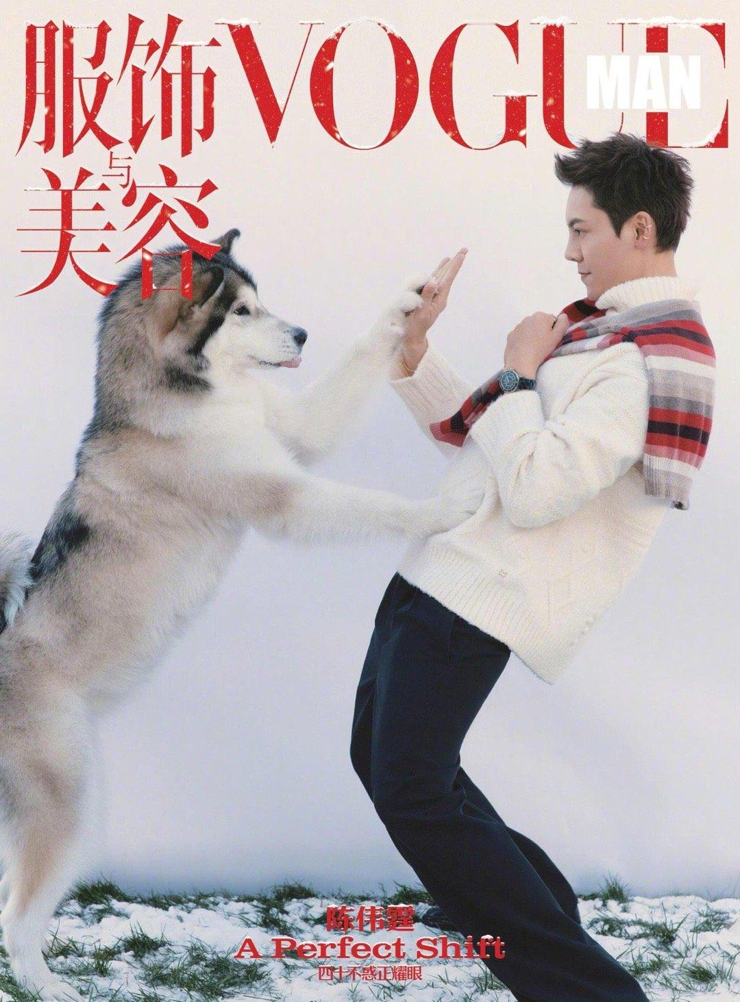 陈伟霆带着他的阿拉斯加犬登上VOGUEMAN封面!封面中抱着的这只狗狗叫馒头!确实很像个馒头