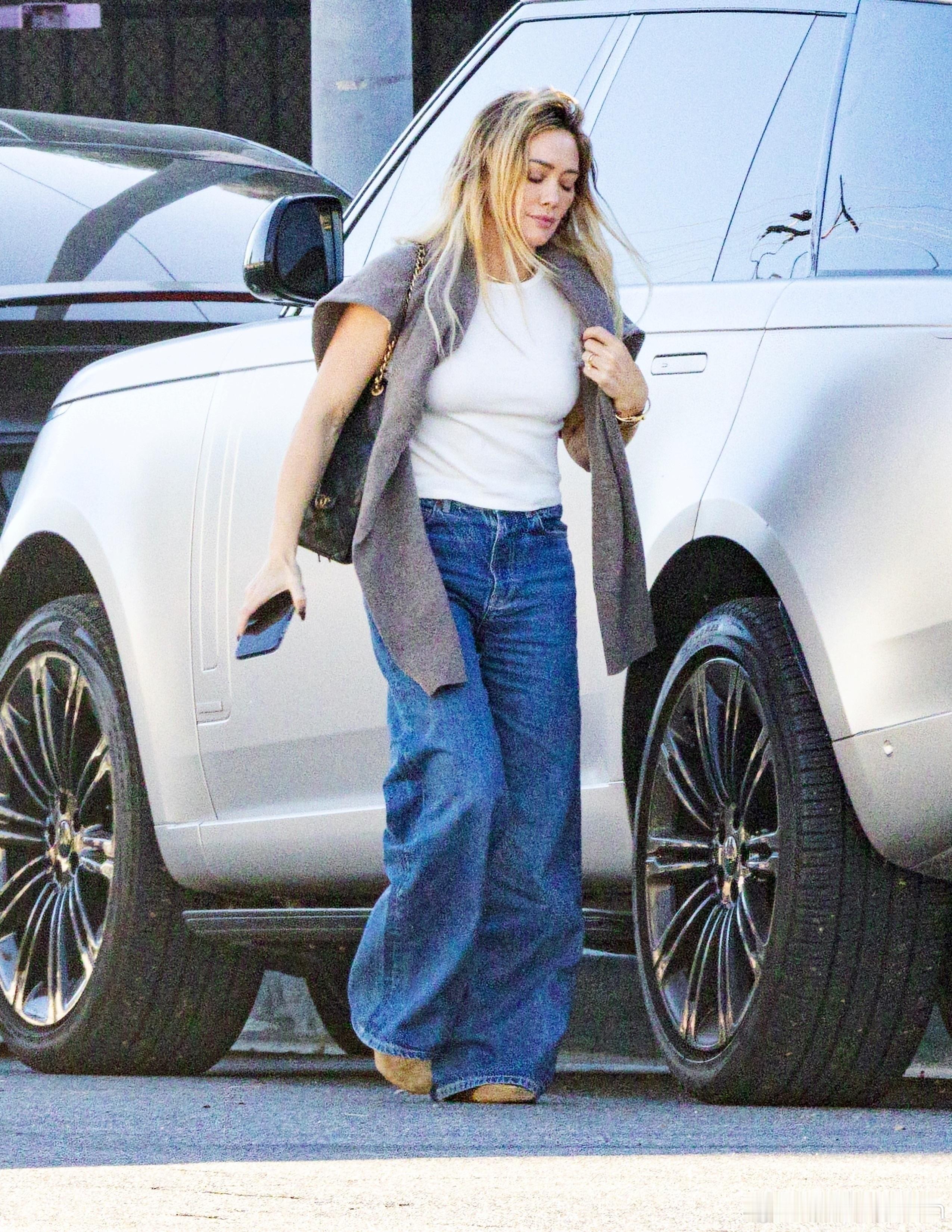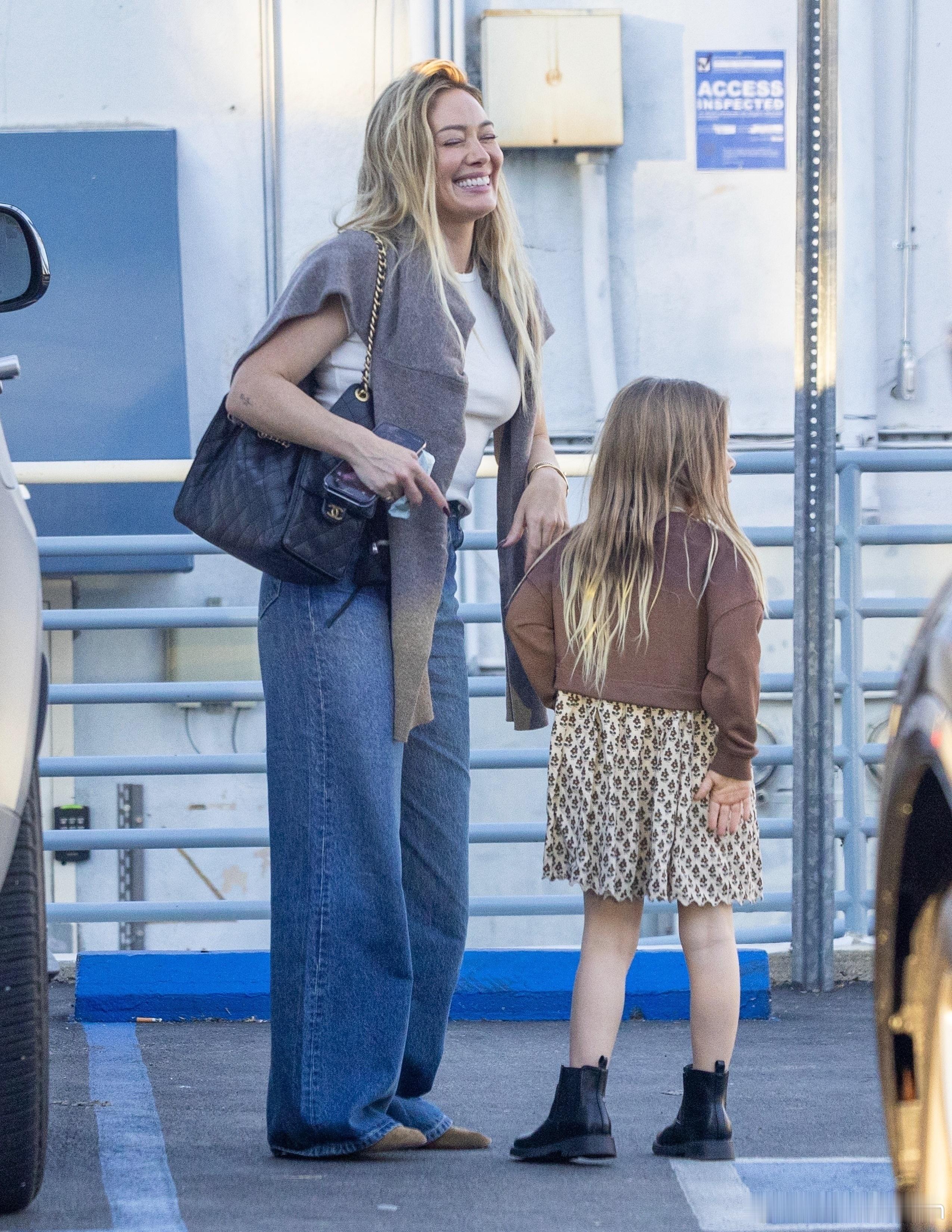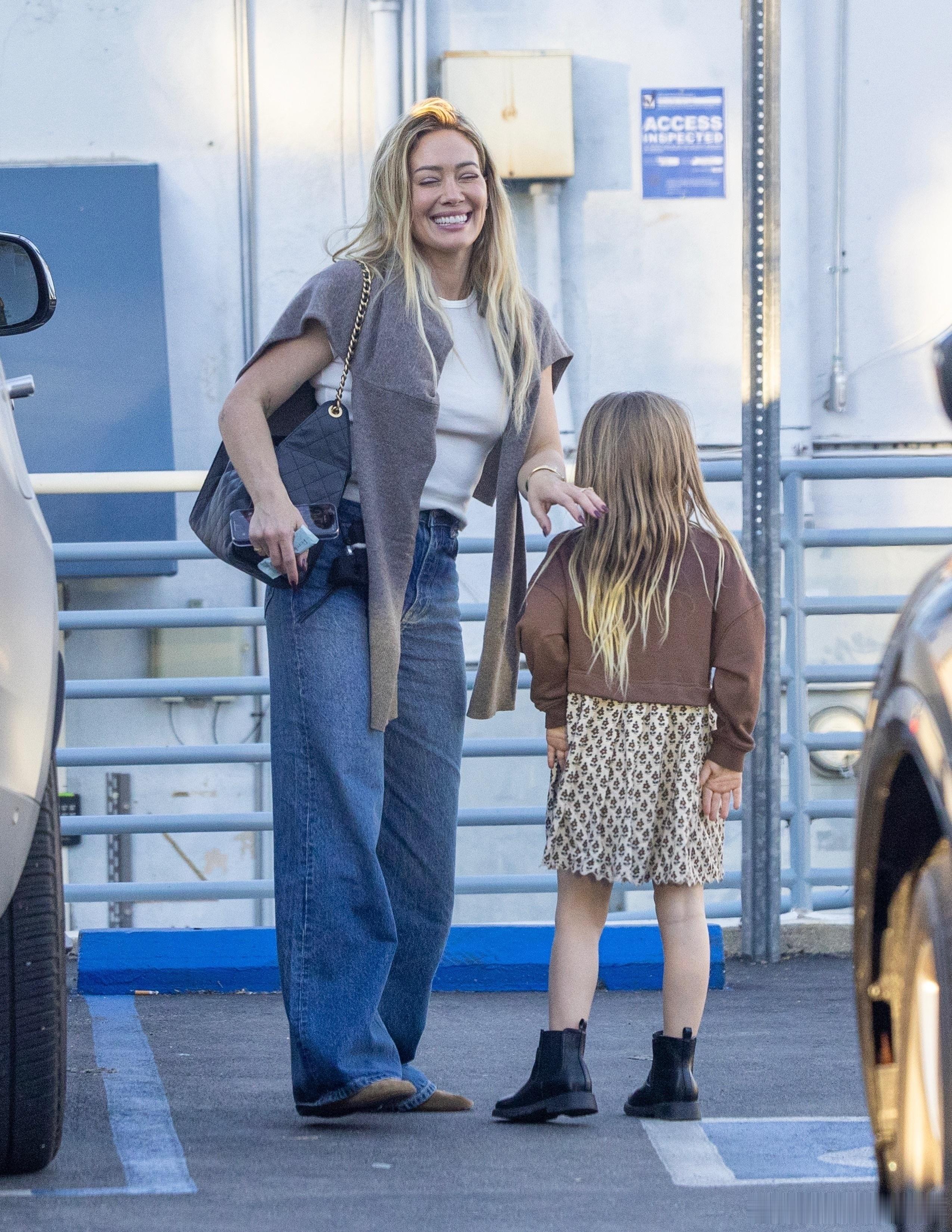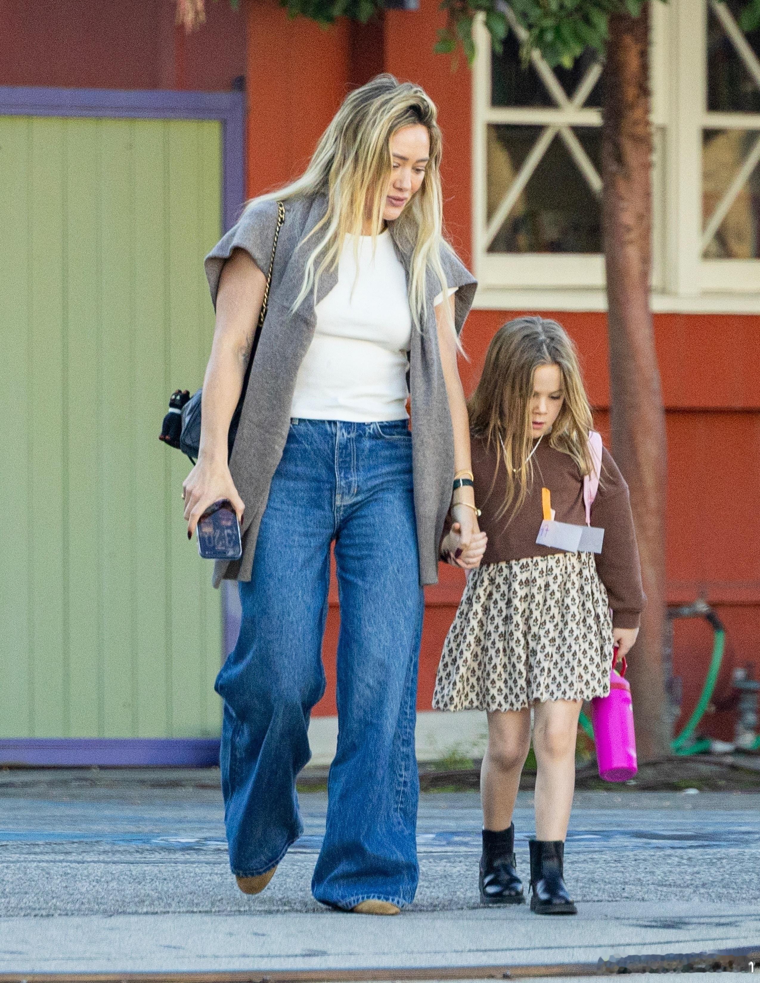 Hilary duff希拉里达芙在洛杉矶外出,出门接闺女mae放学,母女俩的穿搭都好看