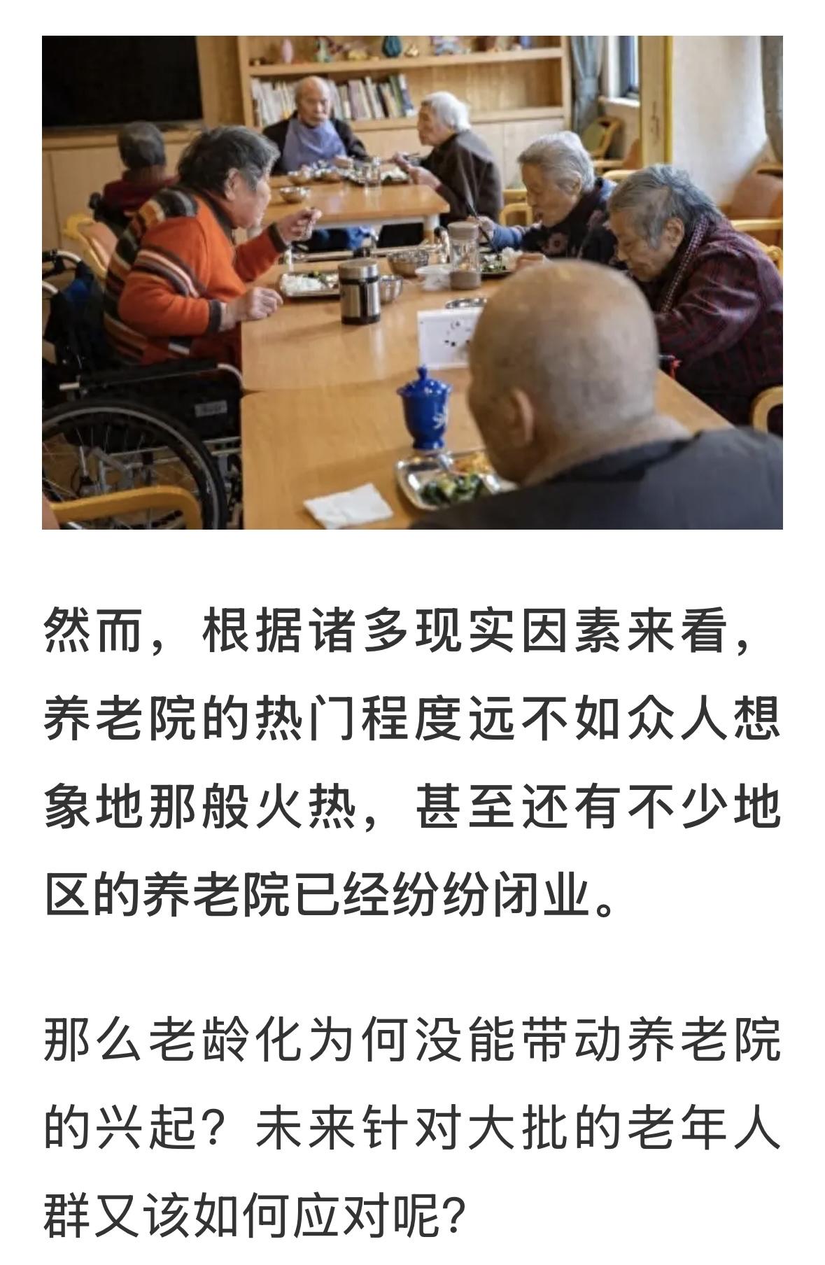 现在这中养老院必然退场!谁愿意去养老院?当然,也不可能全退场,有一些高档养老院,
