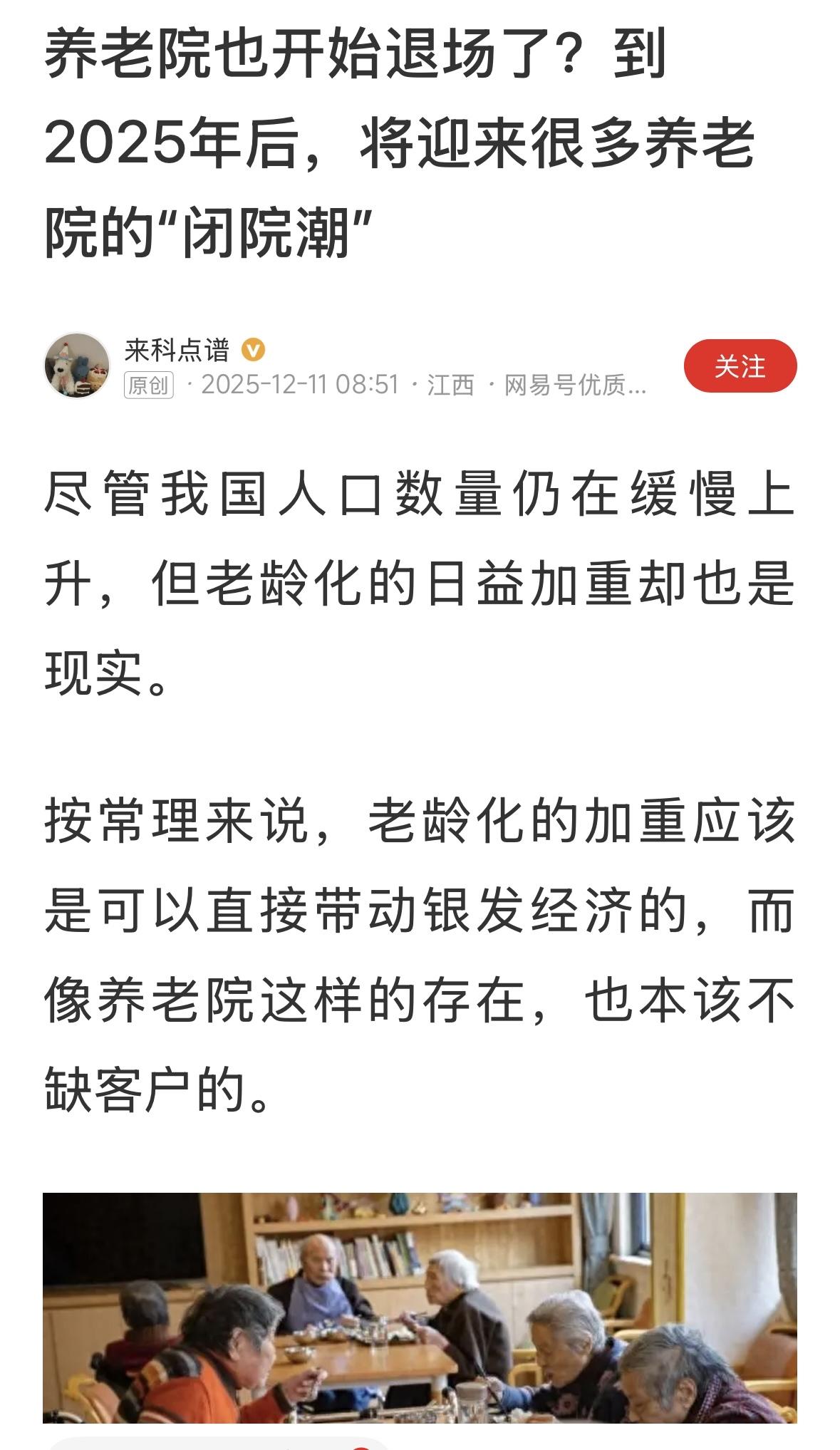 现在这中养老院必然退场!谁愿意去养老院?当然,也不可能全退场,有一些高档养老院,公益养老院会留下来。