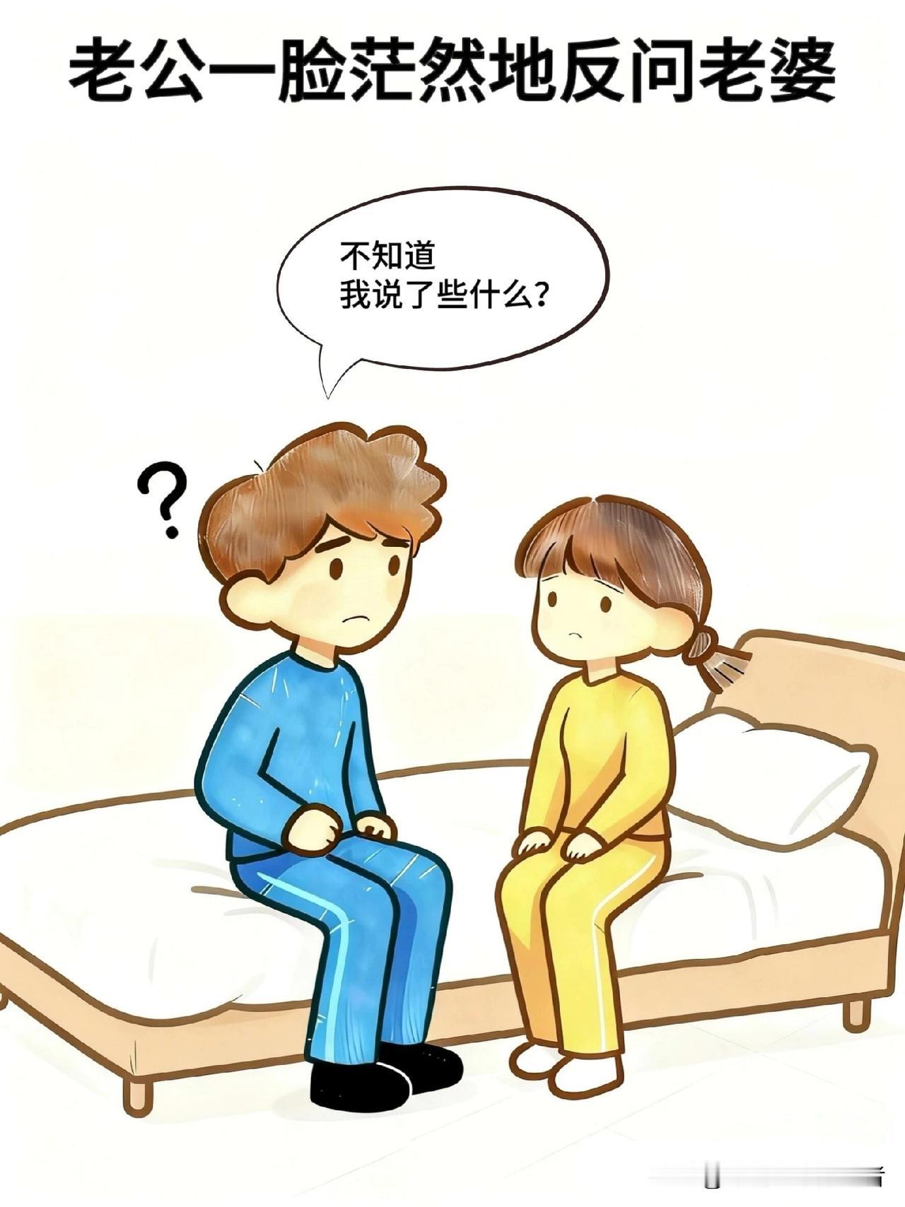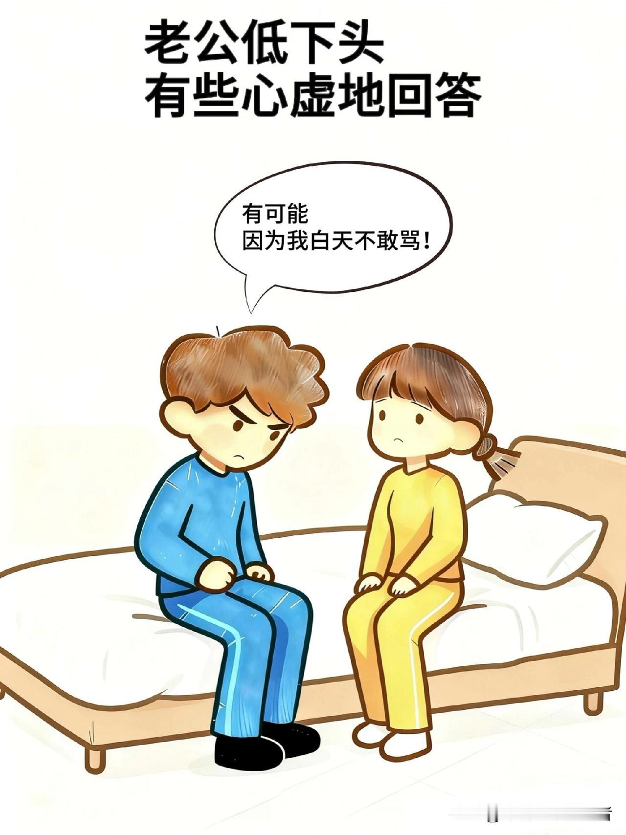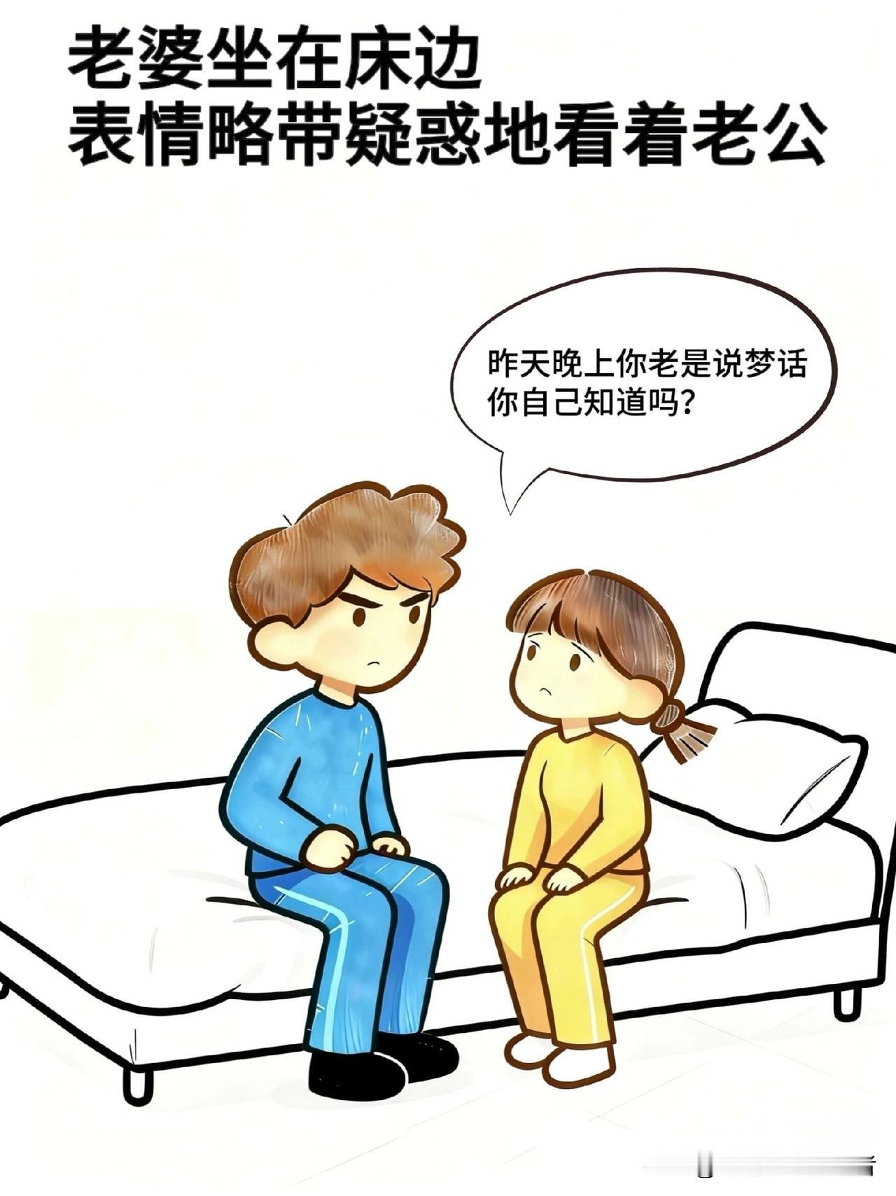 趣味漫画:老婆:昨天晚上你老是说梦话,你知道吗,老公:不知道,我说了些什么,老婆:你好像在骂我,老公:有可能,因为我白天不敢骂
