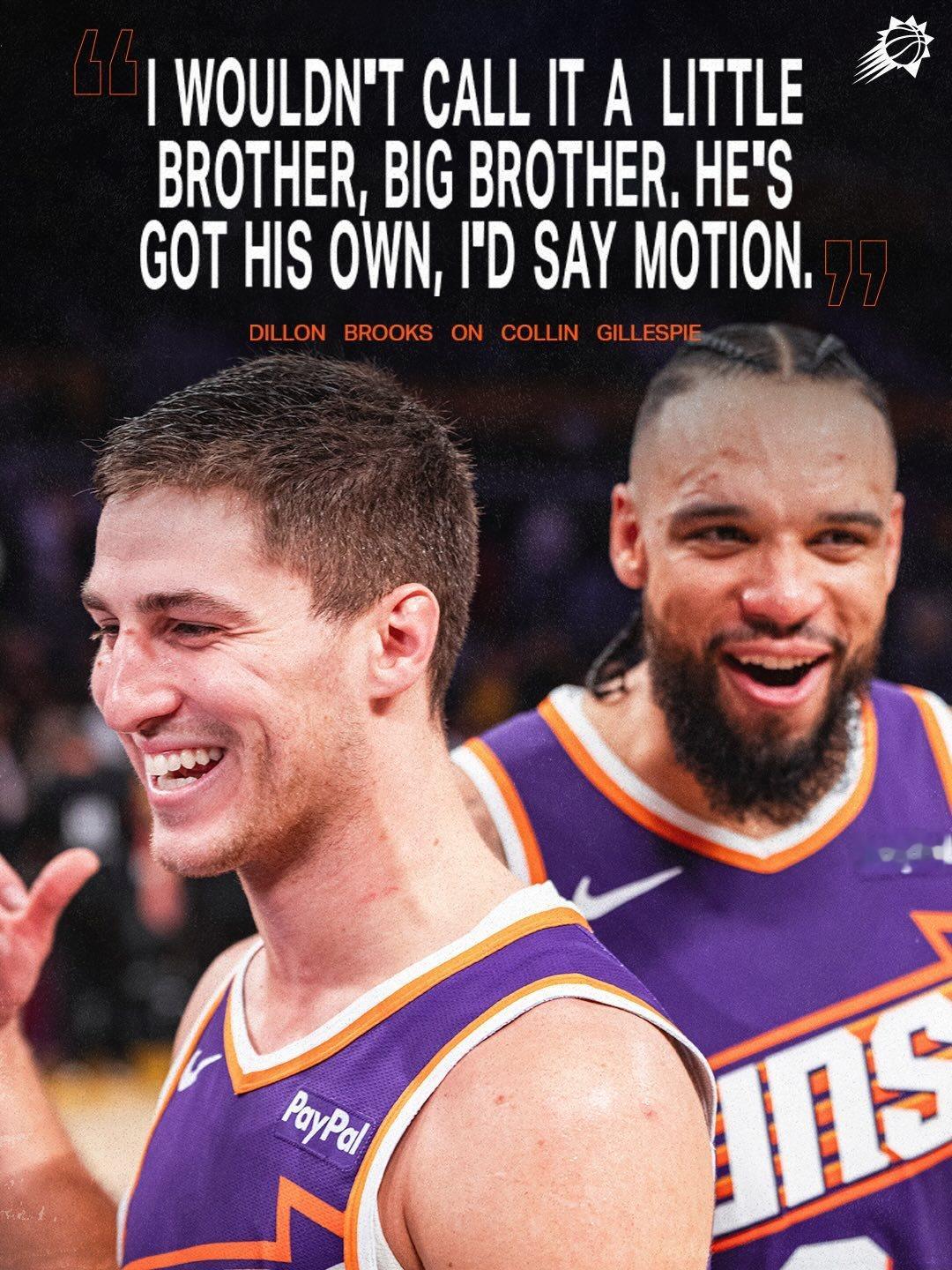 “我不会把这看成那种大哥带小弟的关系。他有自己的打法,我是这么看的。”——这是狄龙谈到吉莱斯皮时说的,表达了对他独立能力的肯定和尊重🫡菲尼克斯太阳 旭日东升