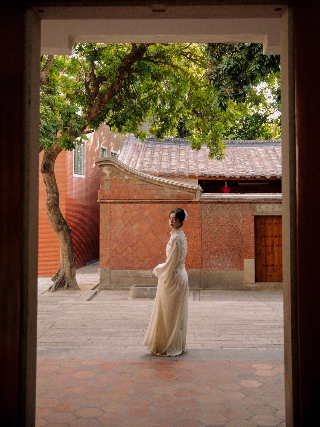 李晟簪的小小花 泉州小巷,白衣簪花,李晟这身造型美得如此不经意却又如此动人。小小簪花映衬着她的温柔气质,每一步都像在时光里写诗。