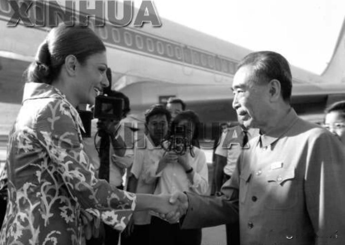 1971年8月16日,中国与伊朗正式建立外交关系,双方“同意建立外交关系,并在尽可能短的期间内任命大使”,伊朗“承认中华人民共和国政府是中国的唯一合法政府”。图为1972年9月18日,国务院总理周恩来在北京亲自到机场迎接并接待了以伊朗法拉赫·巴列维王后为首的伊朗代表团。
